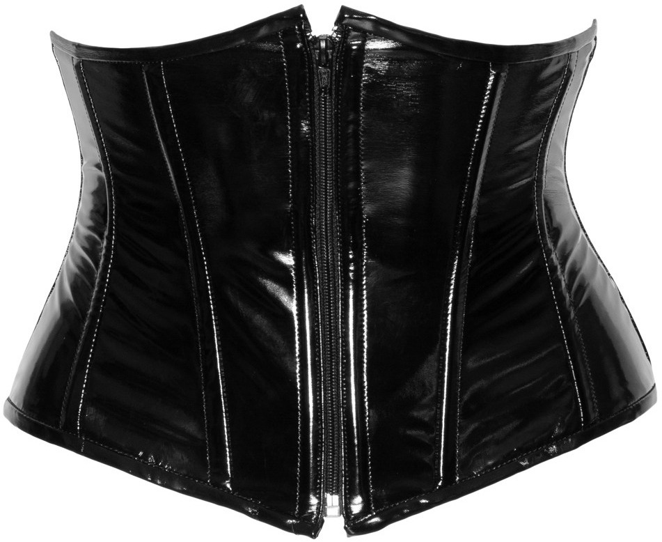 Korzet je vyrobený z lesklého lacku a má ohebné kostice pro vytvarování postavy. Na přední straně najdete praktický zip pro snadné oblékání i svlékání.