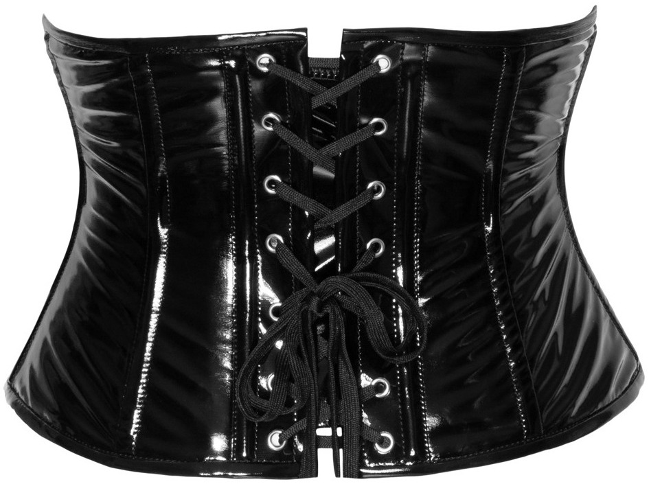 Lakovaný pasový korzet se zipem a šněrováním Black Level