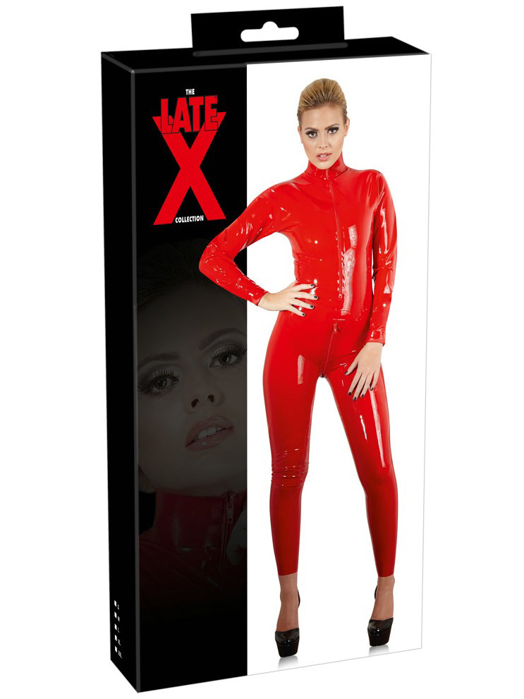 Latexový catsuit pro ženy se dvěma zipy LATE X červený