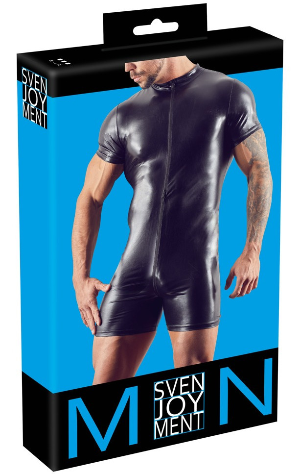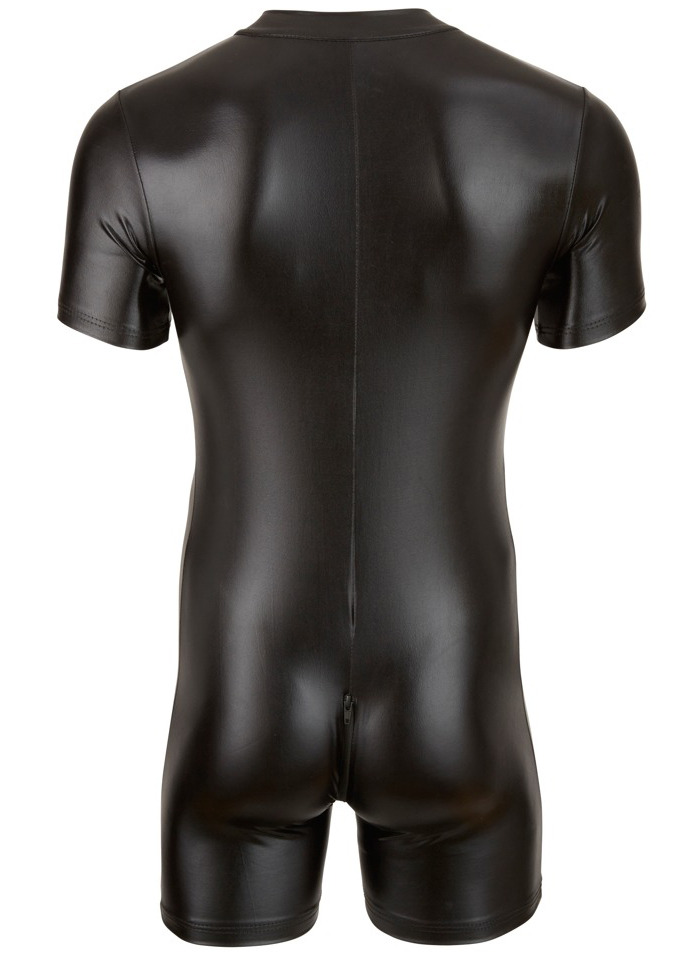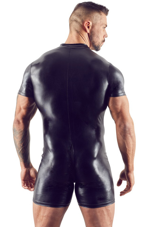 Overal je ušitý z elastické wetlook látky, která obepne tělo a pohodlně se nosí. Pro rychlý přístup k rozkroku a snadné oblékání má dlouhý trojcestný zip.