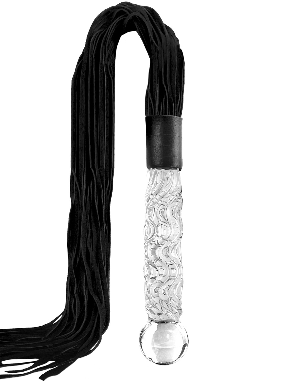Rukojeť je z ručně foukaného nerozbitného skla. Její povrch zdobí tvarované vlnky, které postkytnou dodatečnou stimulaci při zasouvání.