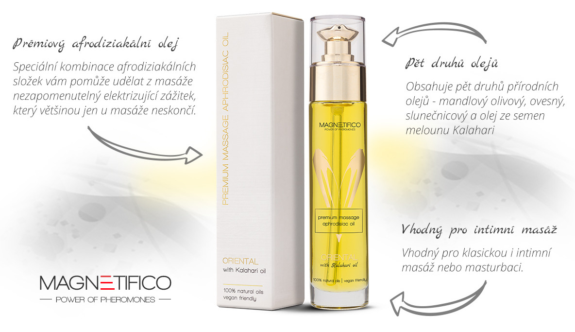 Masážní olej s orientální vůní vám zajistí optimální kluznost a zároveň není příliš mastný a přirozeně se vstřebá do pokožky.