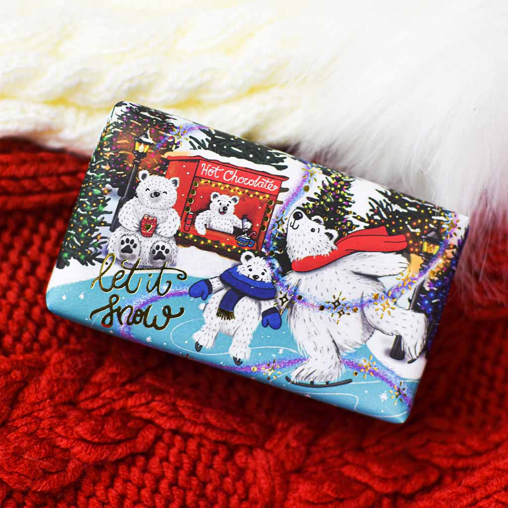Tuhé mýdlo Let It Snow vás potěší sladce svěží květinovou vůní sněženek, plaménku a kvetoucí zimní třešně.