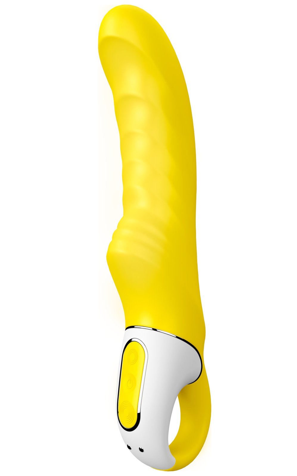 Vibrátor Yummy Sunshine vás ohromí extra výkonem. Je tvarovaný pro přesnou stimulaci bodu G a výstupek před rukojetí bude navíc stimulovat klitoris.