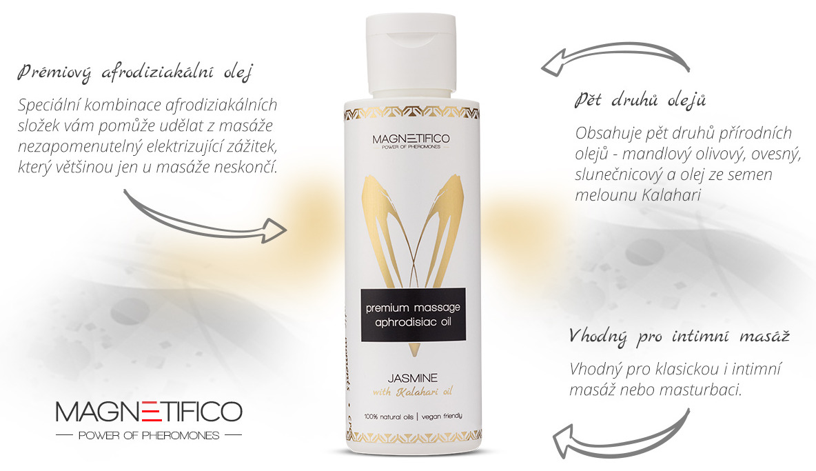 Masážní olej s vůní jasmínu vám zajistí optimální kluznost během masáží celého těla i intimních partií. Proto je vhodný také pro milostnou předehru a masturbaci.