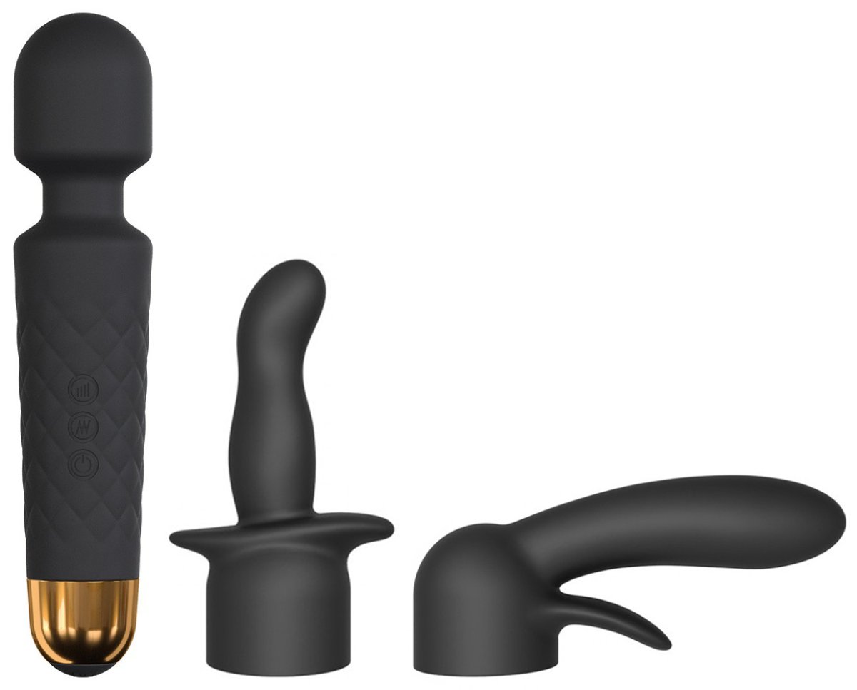 Hlavice je vhodná pro masáže celého těla i erotickou stimulaci. Dostanete k ní 2 nástavce – jeden pro masáž bodu G a klitorisu, druhý pro anální stimulaci.