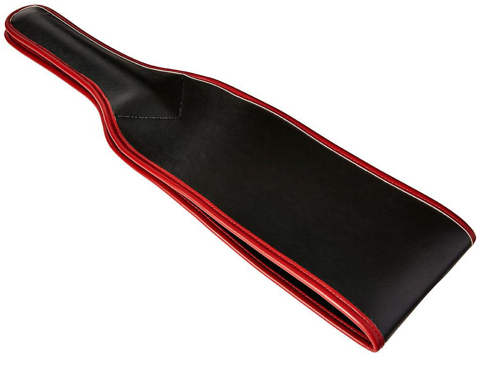 Popruh je vyrobený z umělé kůže a má pevná madla a očka na ruce, aby vám při sexu nevypadl z ruky. Z vnitřní strany madel jsou suché zipy (díky nim vytvoříte z popruhu plácačku).