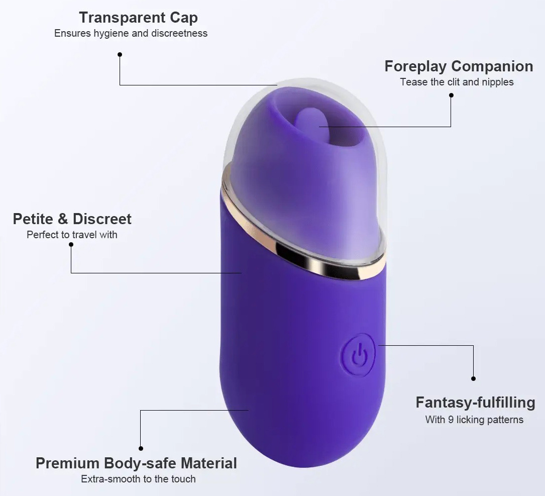 Stimulátor má mrštný jazýček, který svým pohybem napodobuje lízání při orálním sexu. Díky malé velikosti a praktickému víčku je ideální i na cesty – vejde se do kapsy i kabelky.