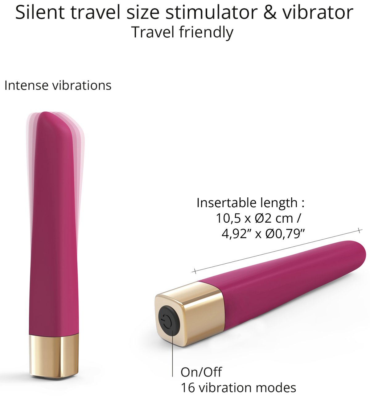 Mini vibrátor Delight Me má cestovní velikost, takže ho můžete mít pořád u sebe. Vibrace jsou silné a hluboké a příjemně tiché.