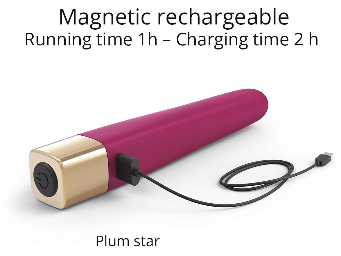 Vibrátor se nabíjí pomocí magnetického USB kabelu.