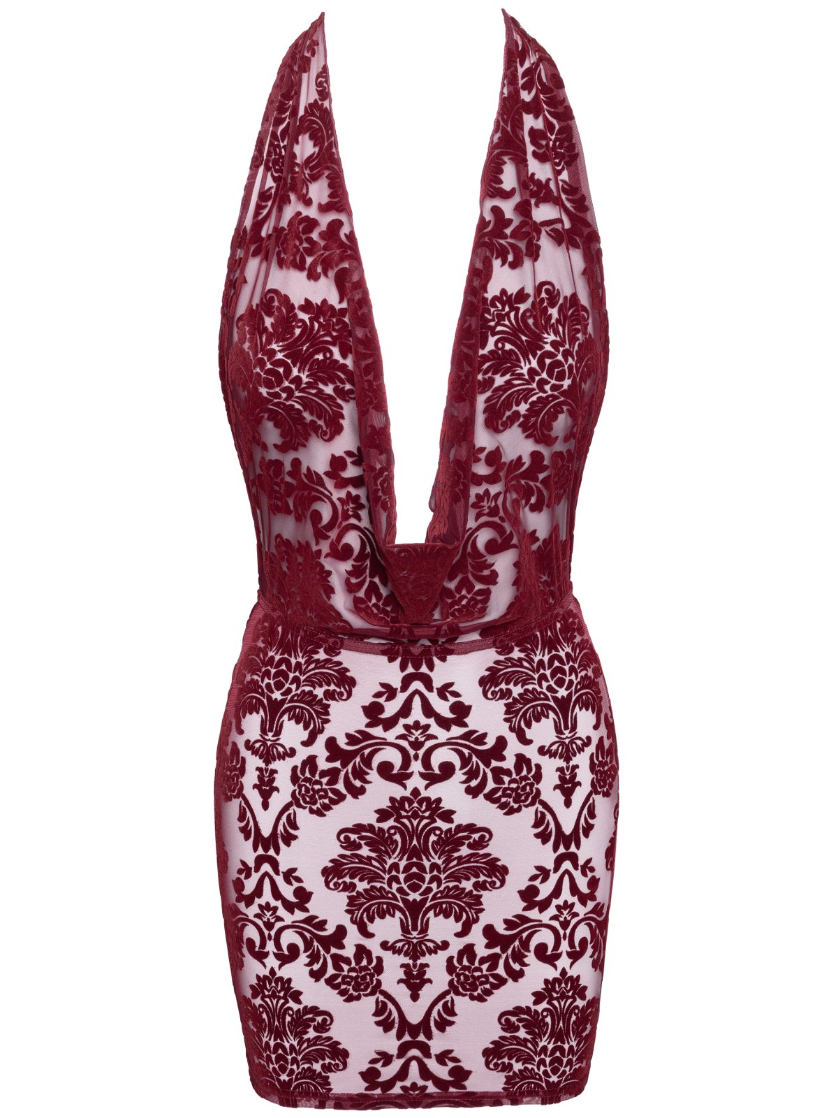 Minišaty jsou ušity z měkké a elastické průsvitné látky se sametovým květinovým potiskem. Díky pružnosti látky se přizpůsobí křivkám těla a pohodlně se nosí.