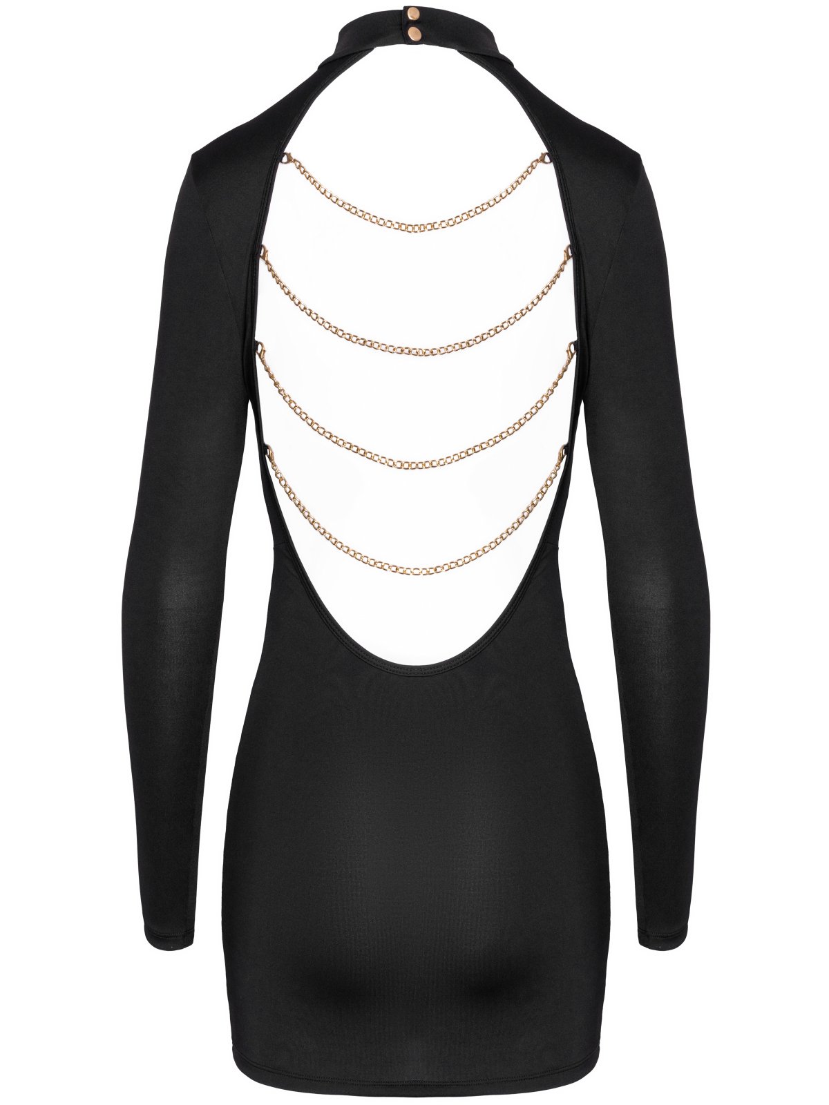 Minišaty mají odhalená záda ozdobená 4 odnímatelnými řetízky ve zlaté barvě. Jsou ušity z měkké a elastické látky, takže se pohodlně nosí a neomezují v pohybu.