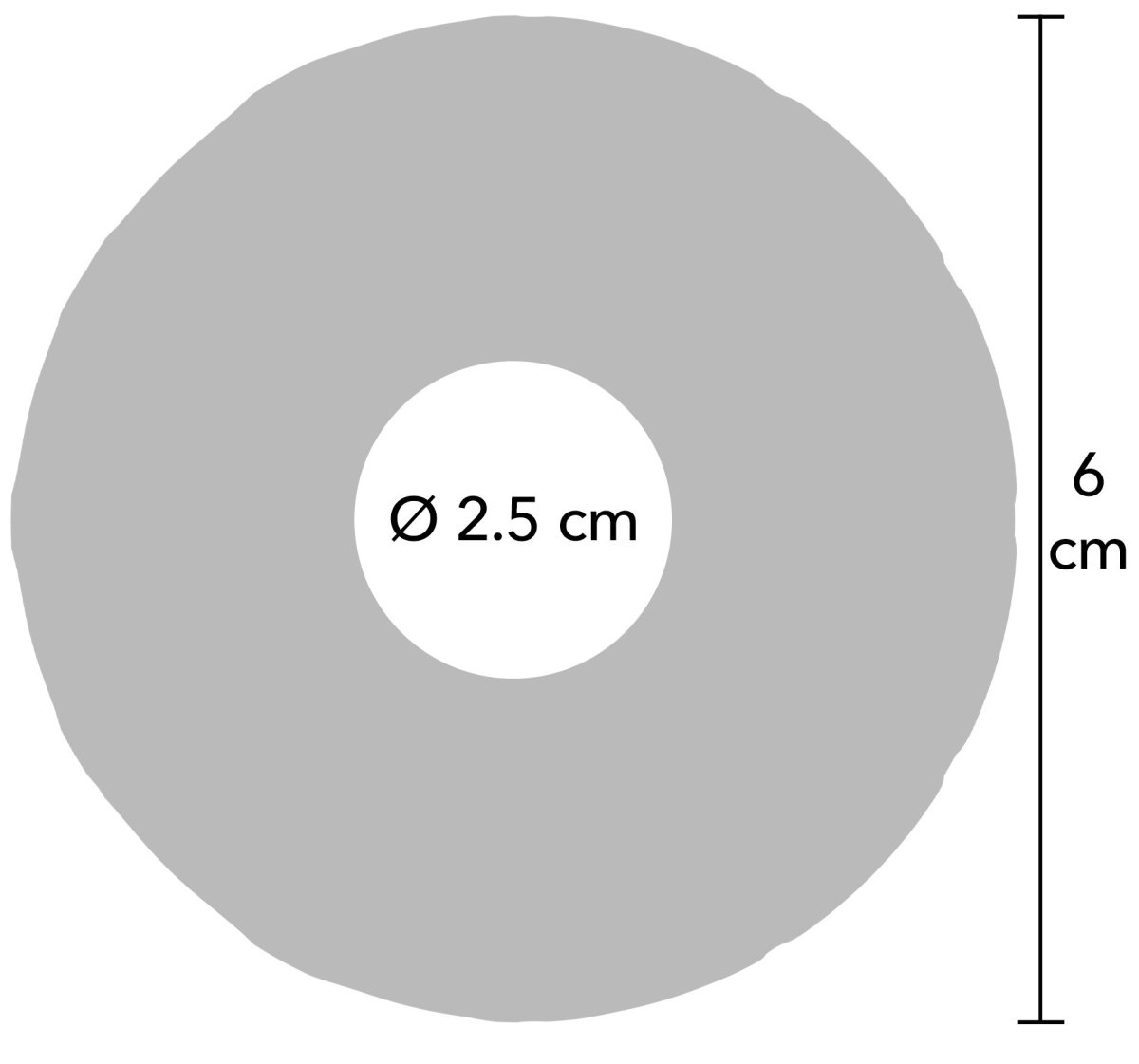 - Rozměry: vnější průměr 6 cm, vnitřní průměr 3 cm