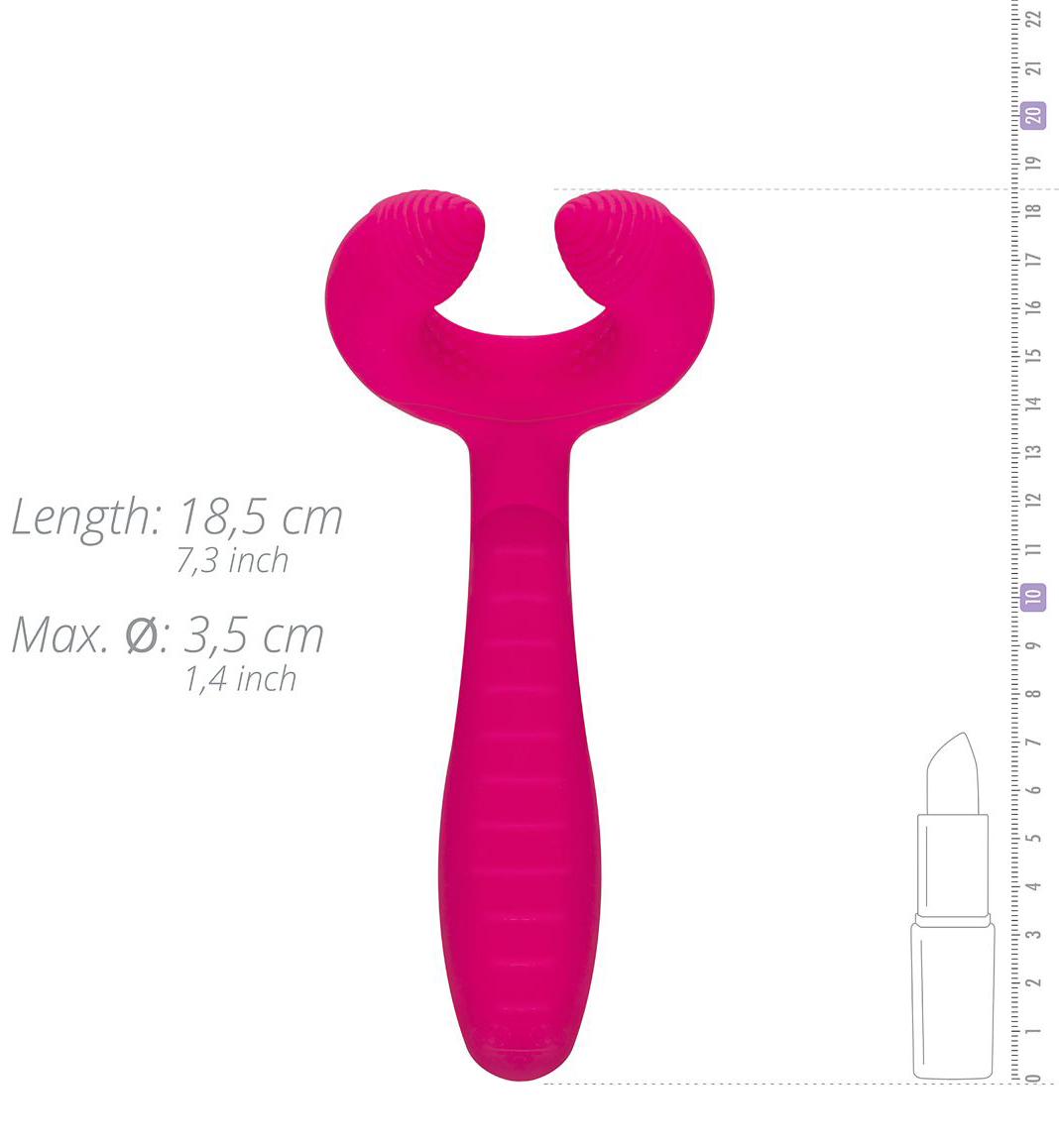 Zasunutelná část je pevná, takže jí snadno zatlačíte na bod G či prostatu a zintenzivníte prožitek, ramena stimulátoru jsou pak měkká a ohebná. Díky tomu se přizpůsobí křivkám těla a zajistí pohodlnější zážitek.