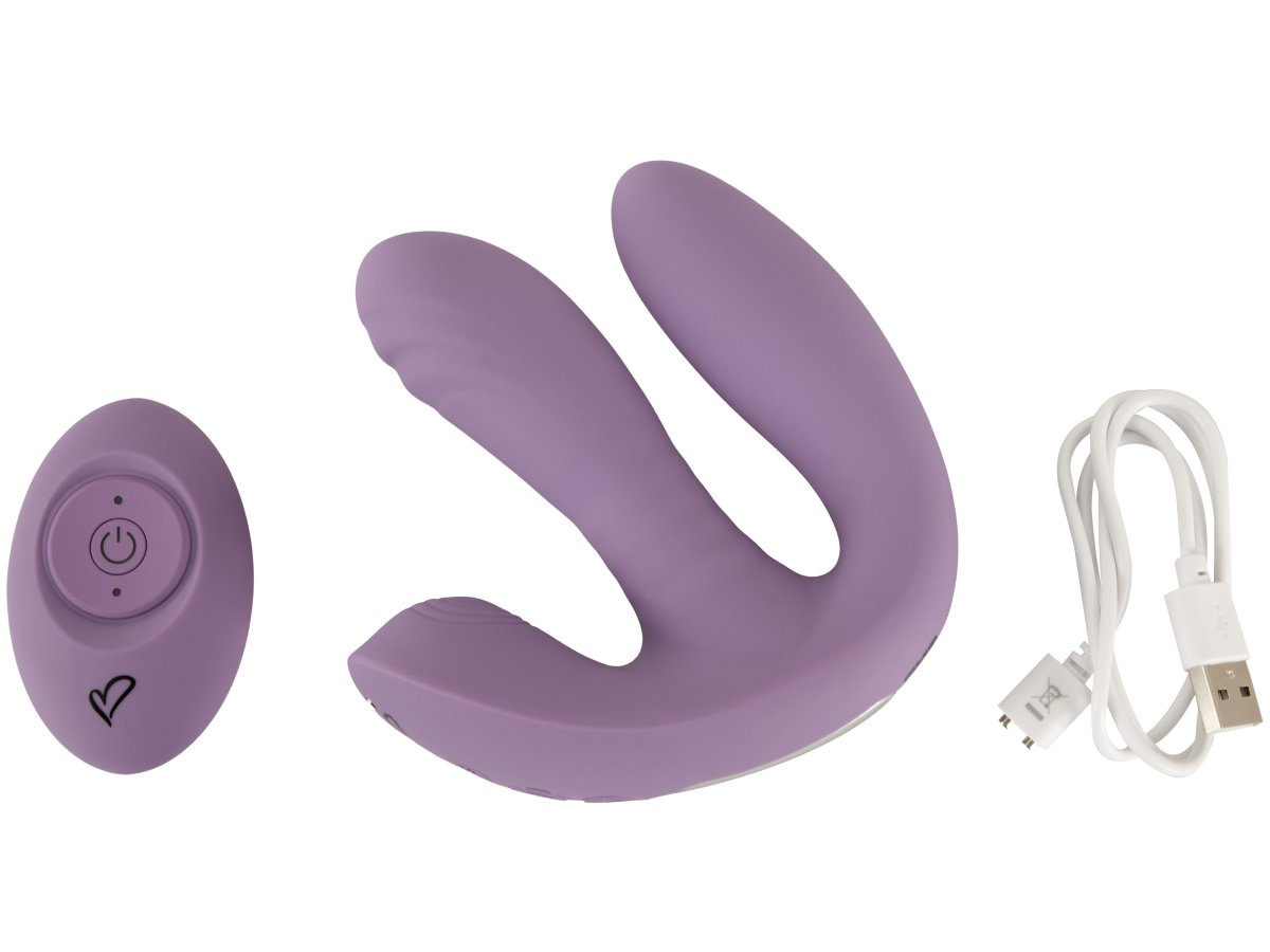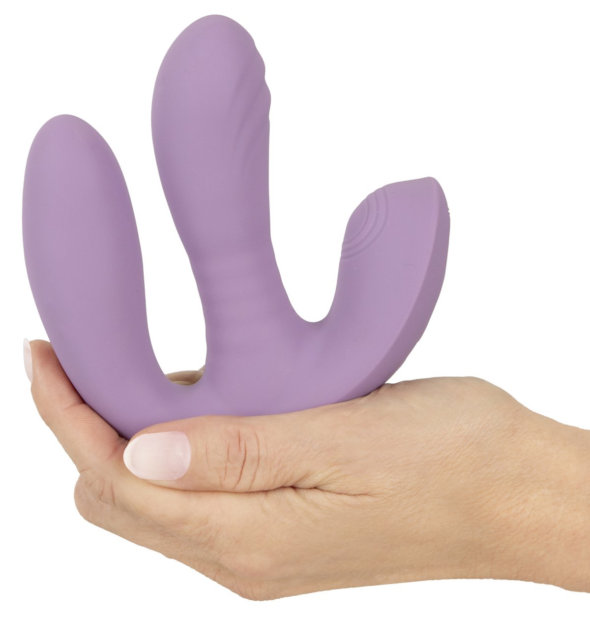 Vibrátor potěší vaginu, klitoris a konečník najednou, a to různými druhy stimulace. Vaginální rameno přiráží, anální část vibruje a rameno pro stimulaci klitorisu pulzuje.
