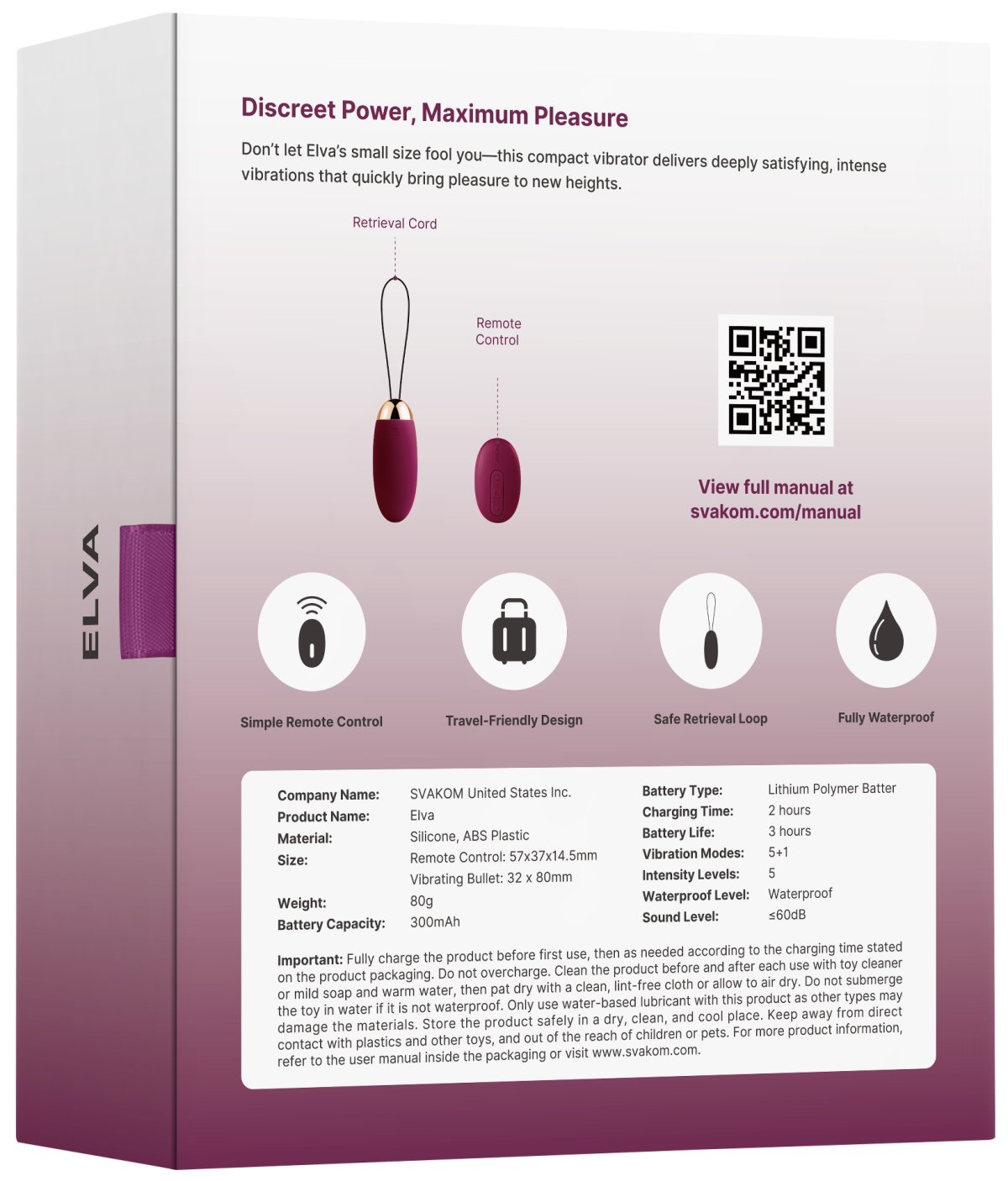 Vibrační vajíčko Elva je jako stvořené pro diskrétní vibrační potěšení doma i venku, třeba na nákupech či v kavárně. Lze pohodlně ovládat dálkovým ovladačem.