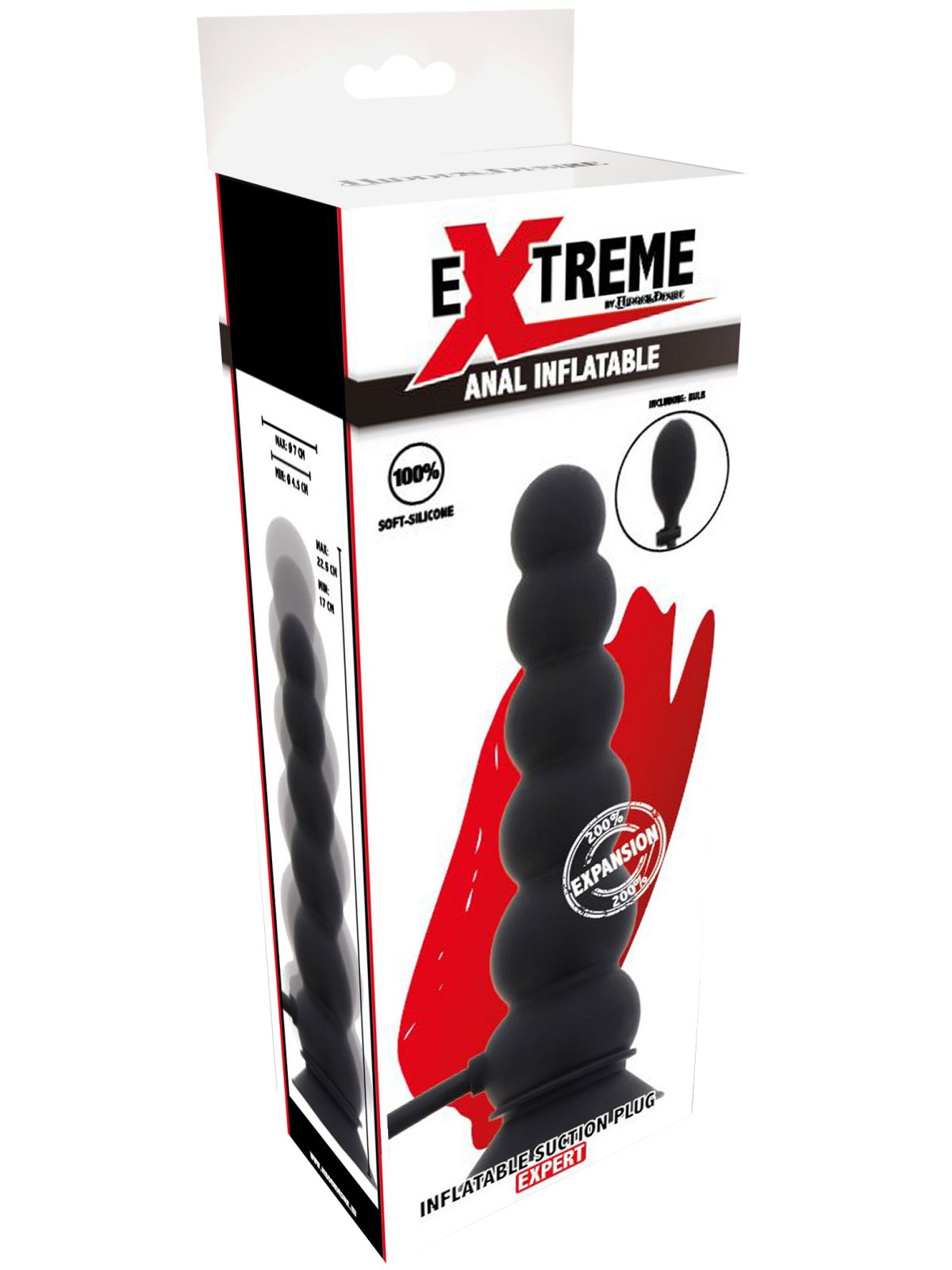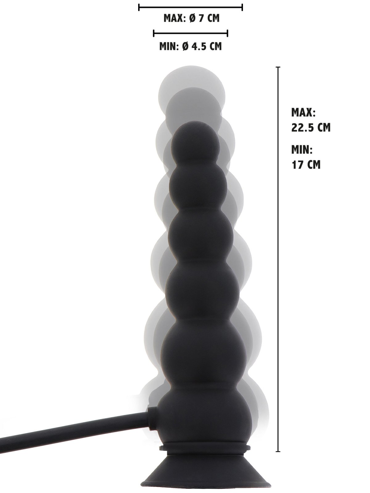 Anální kuličky můžete nafouknout až na průměr 7 cm. Díky silné přísavce je nemusíte při hraní držet v ruce.