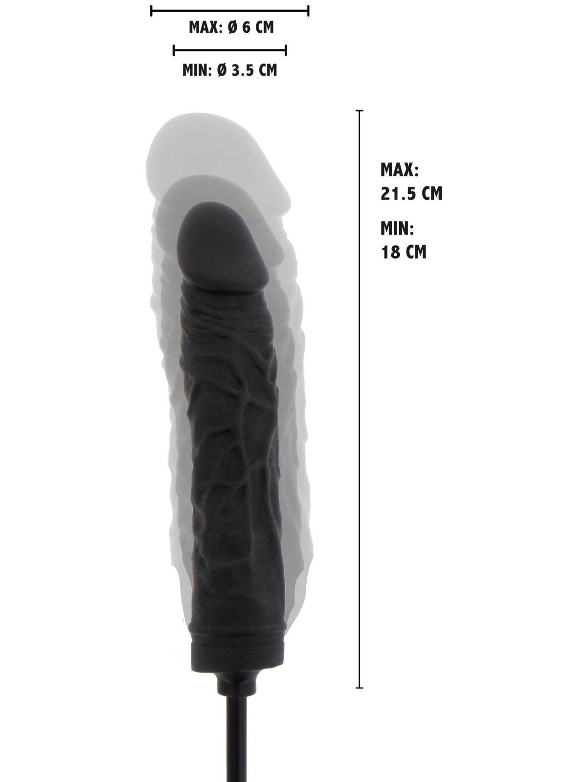 Dildo můžete nafouknout až na průměr 6 cm. Je měkké a nemá pevné jádro – pro snadnější zasouvání je potřeba ho alespoň trochu nafouknout.