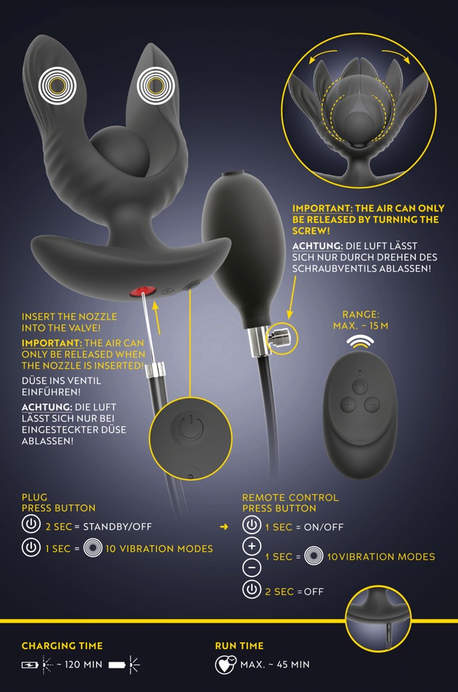 Kolík se postará o kvalitní zaplnění a provibrování análního tunelu – nafukováním kuličky roztáhnete ramena přesně tak, jak budete chtít.