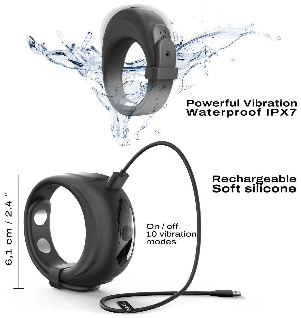 Kroužek je 100% voděodolný (IPX7 = odolnost proti ponoření do vody na 30 minut v hloubce 1 metr), takže se můžete naplno ponořit do smyslných her i ve sprše, vaně nebo bazénu.