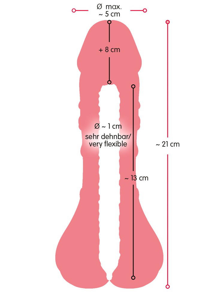 - Rozměry: celková délka 21 cm, vnější průměr 4,2 - 5 cm, zasunutelná délka 13 cm, vnější průměr otvoru 0,5 cm, vnitřní průměr otvoru 1 cm (flexibilní)