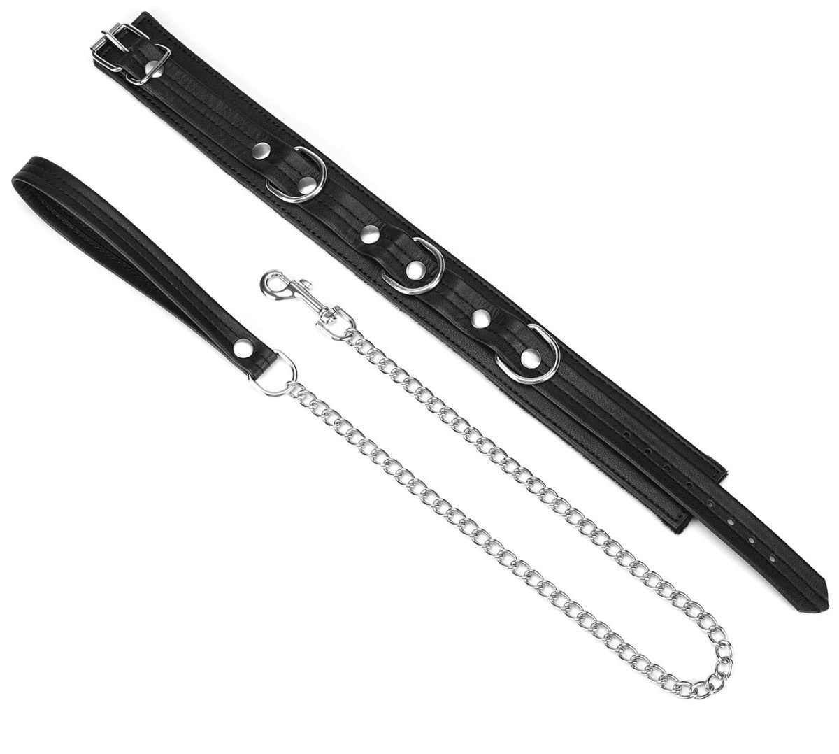 Má zapínání na kovovou přezku, takže ho jednoduše utáhnete podle potřeby. Vodítko z kovového řetízku k obojku připnete pomocí karabinky.