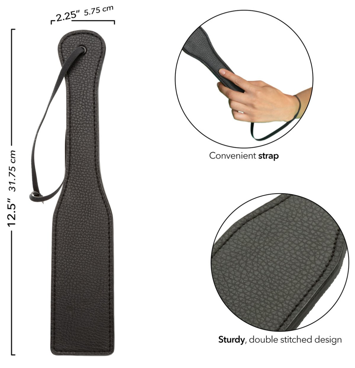Plácačka je oboustranná – z jedné strany je umělá kůže, z druhé měkká textilie. Je vhodná pro lehké i intenzivní výprasky.