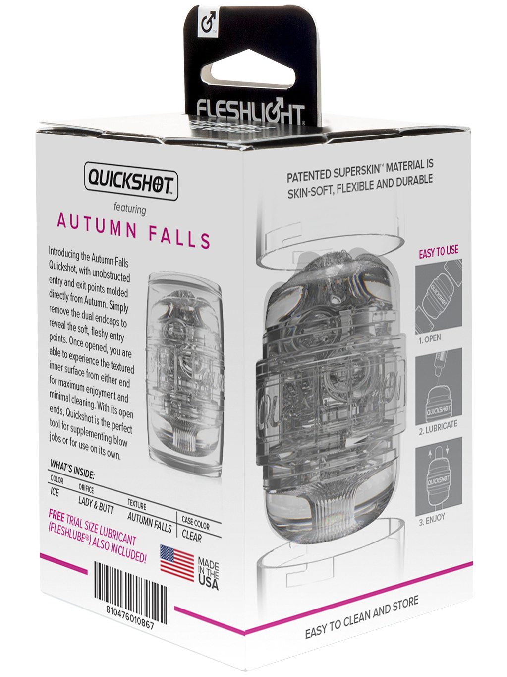 Masturbátor je přesným odlitkem vaginy a zadečku pornoherečky Autumn Falls. Má otvor z obou stran – využijete ho při sólo i párových hrách, třeba jako doplněk při orálním sexu.