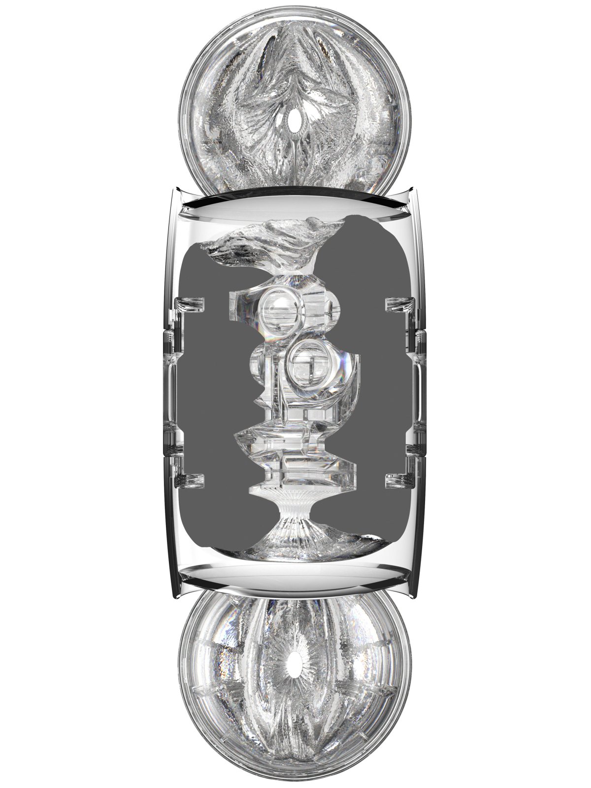 Průsvitné pouzdro z tvrdého plastu se dobře drží v ruce a navíc umožňuje sledovat váš penis v akci. Vnitřní vložku chrání dvě víčka a lze ji z pouzdra snadno vyjmout a vyčistit.
