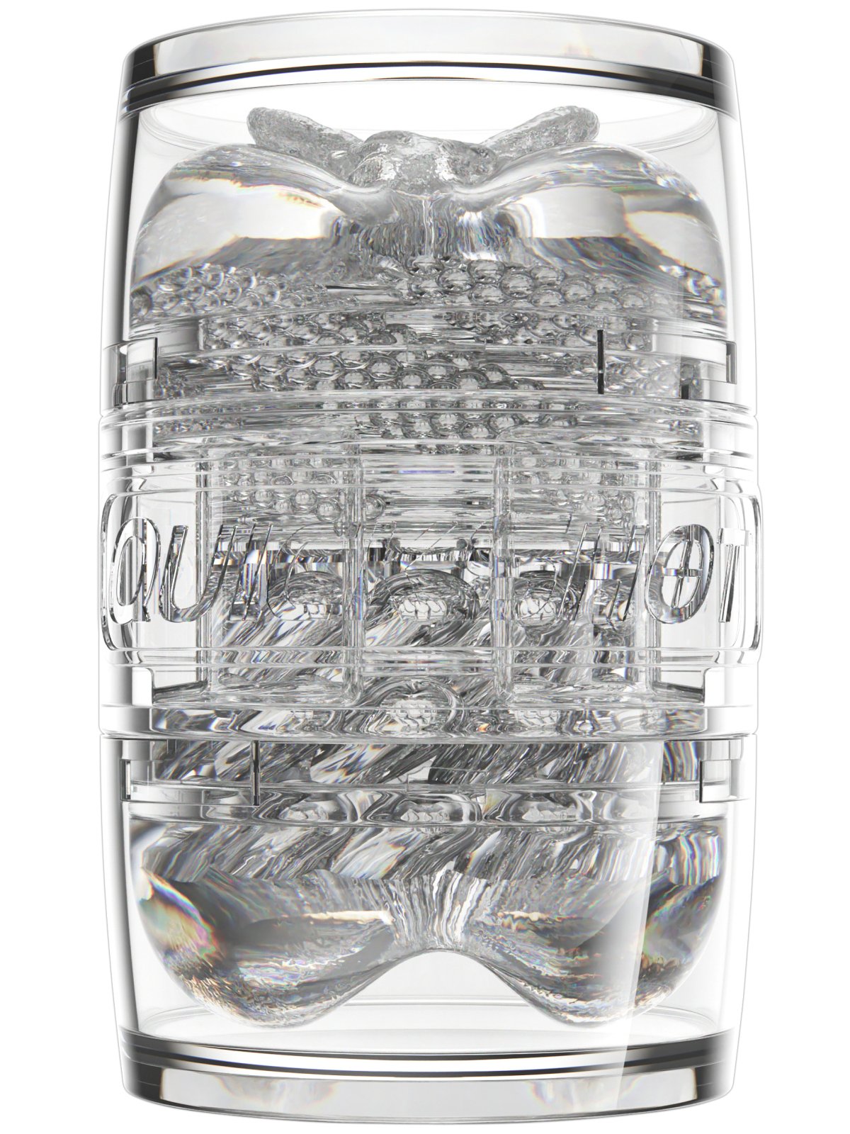 Průsvitné pouzdro z tvrdého plastu se dobře drží v ruce a navíc umožňuje sledovat váš penis v akci. Vnitřní vložku chrání dvě víčka a lze ji z pouzdra snadno vyjmout a vyčistit.