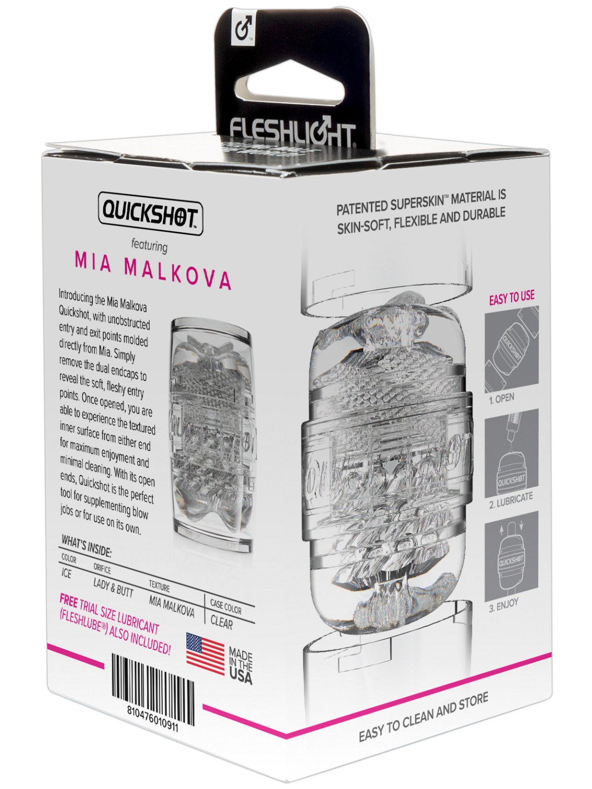TIP: Pokud se vám masturbátor líbí, ale máte širší penis, můžete jej používat i bez plastového pouzdra. A jestli ho chcete proměnit v přirážecí hračku, stačí jej upnout do adaptéru Fleshlight Quickshot Launch.