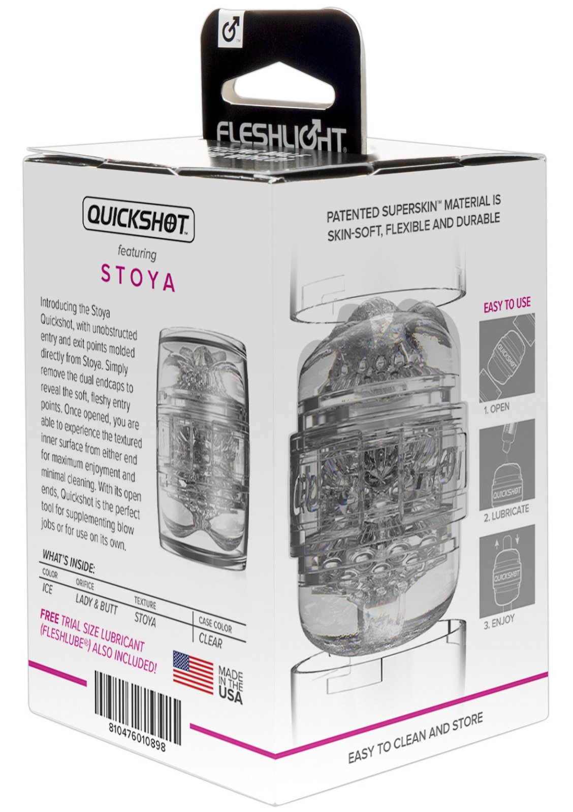 TIP: Pokud se vám masturbátor líbí, ale máte širší penis, můžete jej používat i bez plastového pouzdra. A jestli ho chcete proměnit v přirážecí hračku, stačí jej upnout do adaptéru Fleshlight Quickshot Launch.