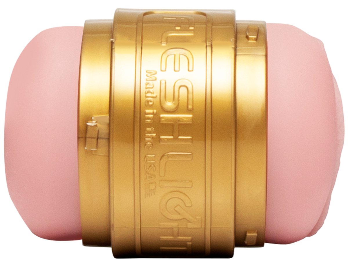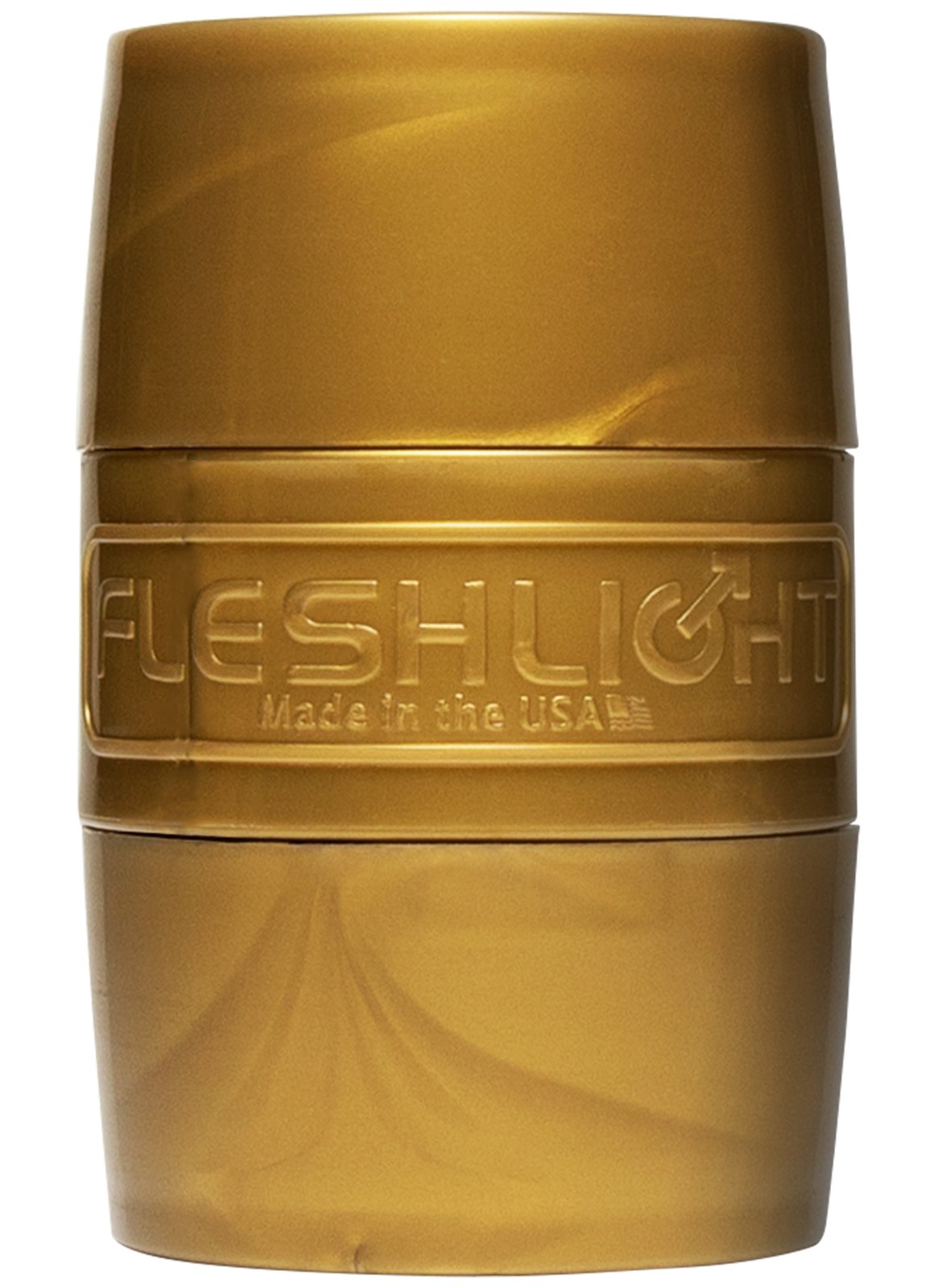 Zlaté pouzdro z tvrdého plastu se dobře drží v ruce a vnitřní vložku chrání dvě víčka.
