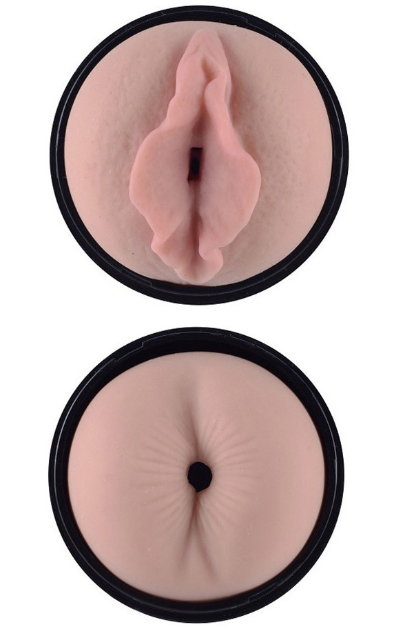 Masturbátor je oboustranný – na jedné straně je realisticky vymodelovaná vagina, na druhé anální otvor.