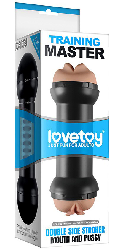 Masturbátor je oboustranný – na jedné straně je realisticky vymodelovaná vagina, na druhé ústa.