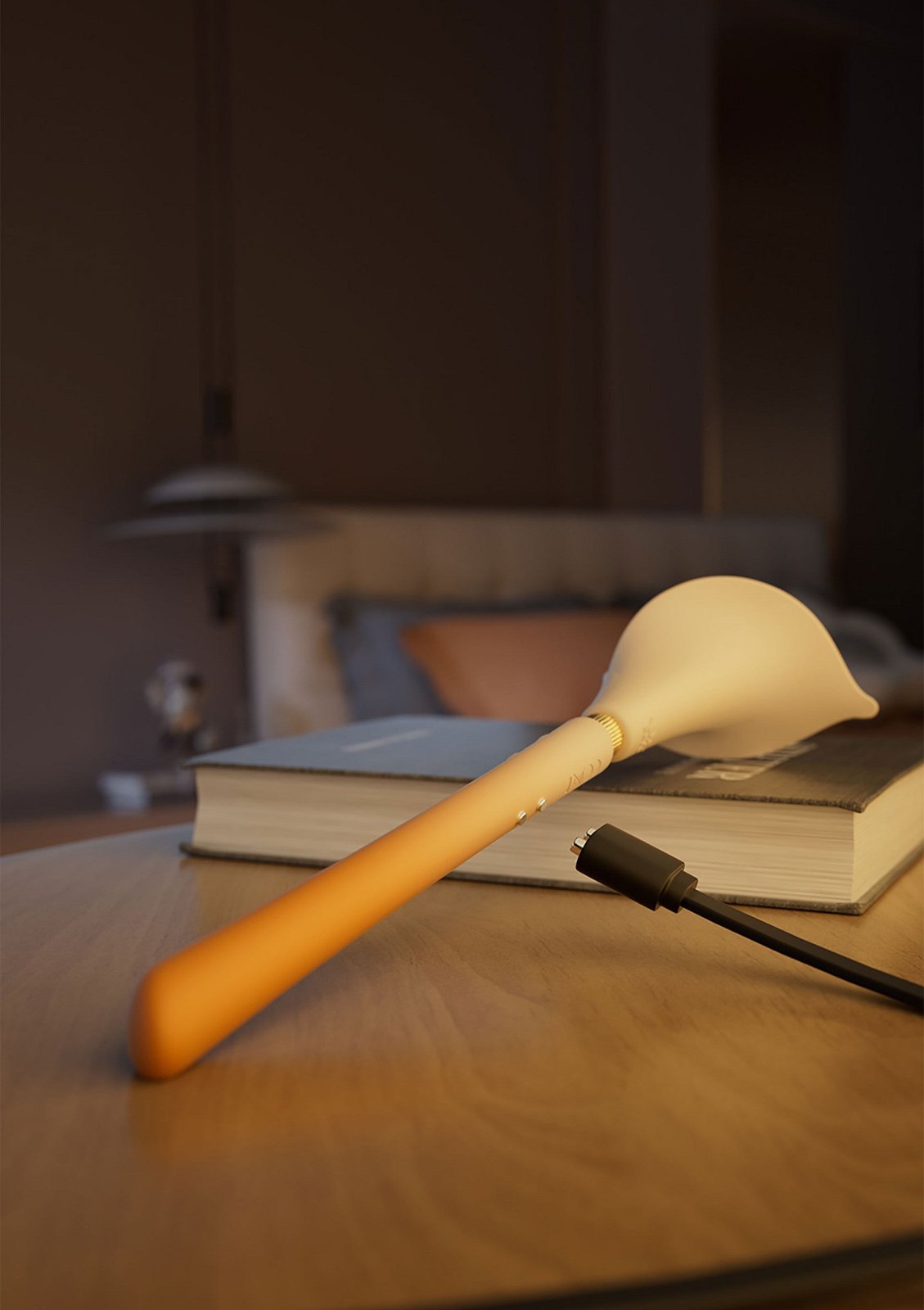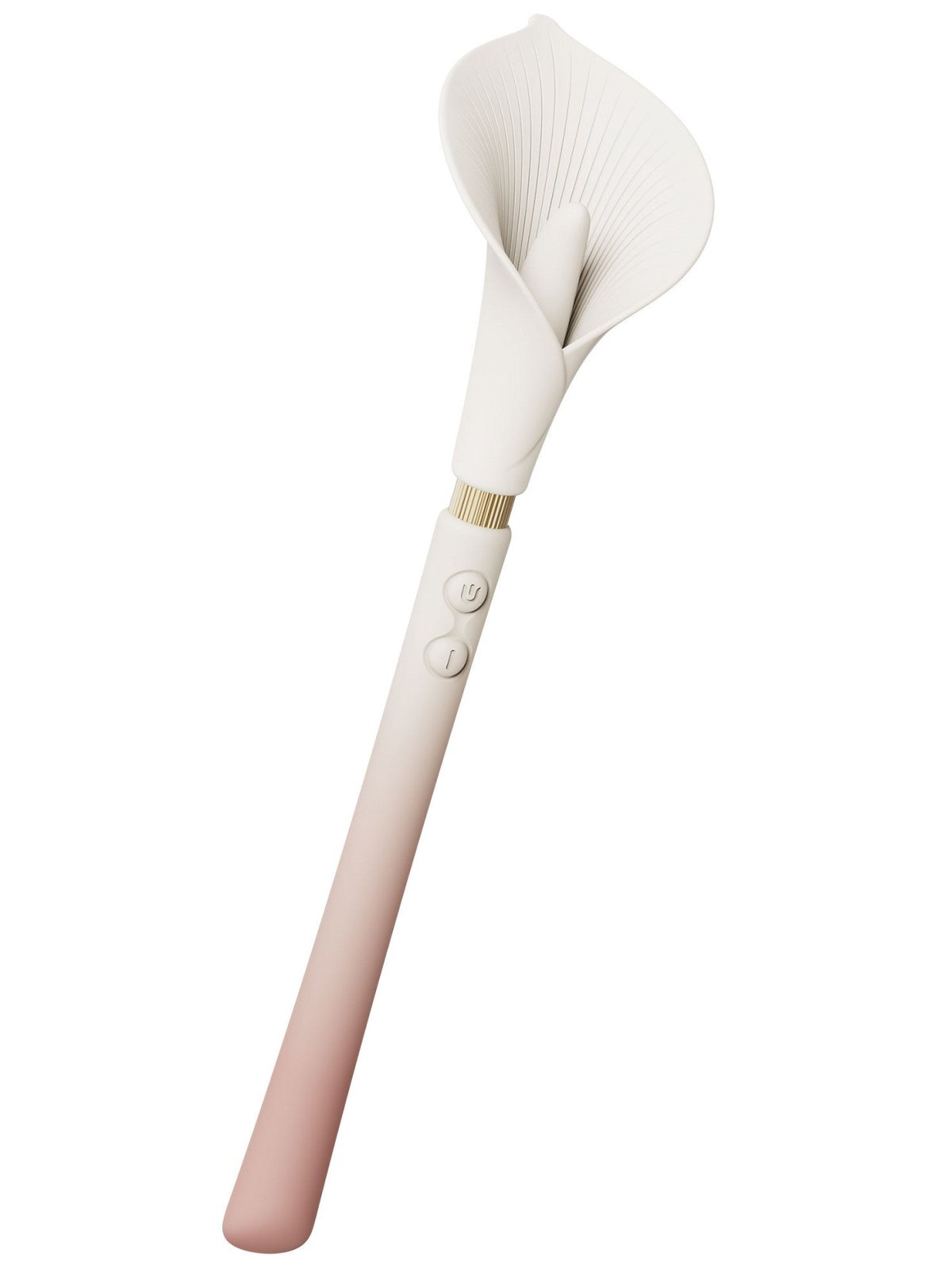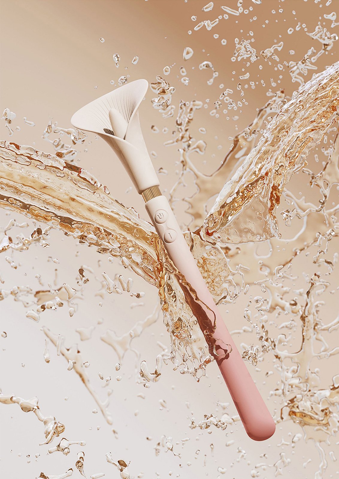 Vibrátor má diskrétní design (inspirovaný květinou kala) a je oboustranný – jedna strana slouží pro masáž bodu G, druhá pro přesné zacílení vibrací.
