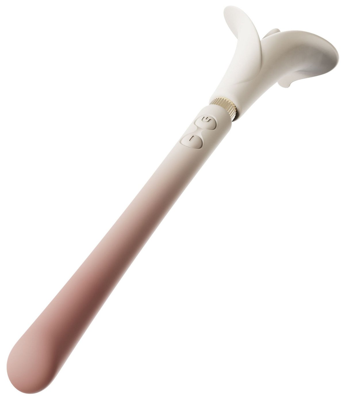 Druhá strana poslouží jako praktická rukojeť a vibrátor pro stimulaci bodu G. Špička je ohebná a přizpůsobí se vnitřním křivkám vašeho těla.