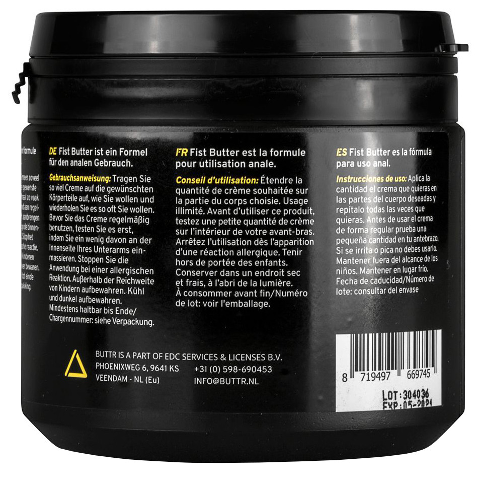 BUTTR Fist Butter je založený na olejové bázi. Je hustý a extra hladký, takže nestéká a usnadňuje penetraci. Hodí se především na fisting a anální sex.
