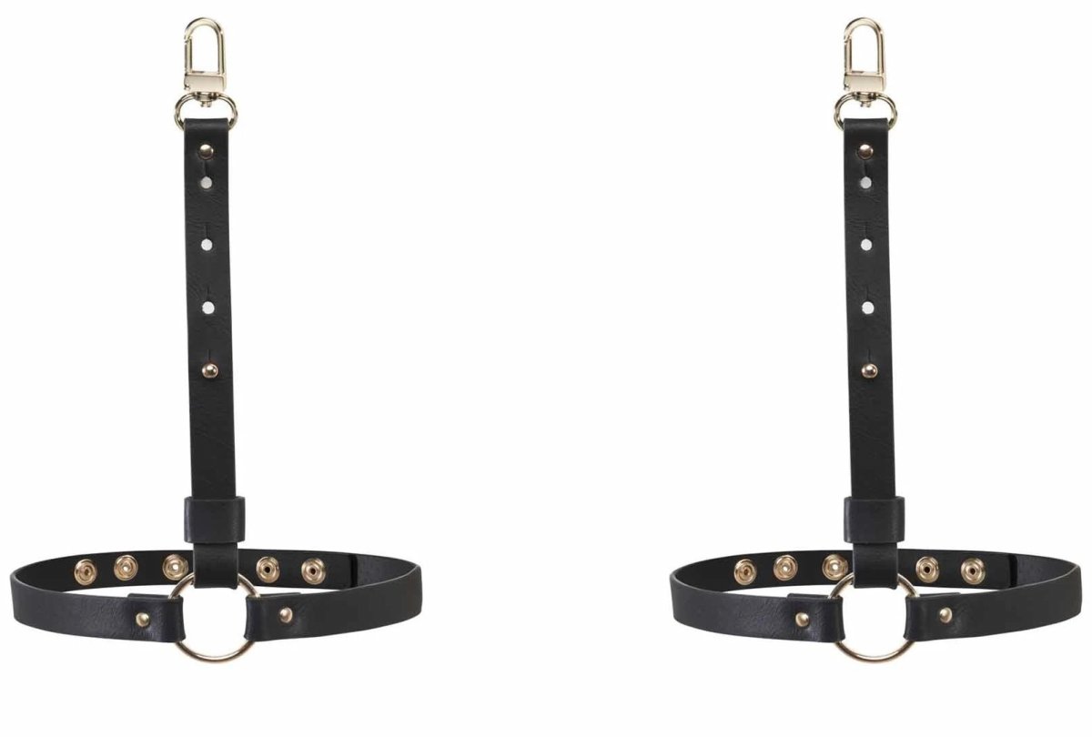 Ozdobné podvazky jsou vyrobené z černé umělé kůže, takže jsou 100% vegan. Mají jednoduché zapínání, pomocí kterého si nastavíte potřebnou délku i obvod kolem stehna. Pomocí karabinek je snadno připnete k poutkům kalhot, šortek nebo spodního prádla.