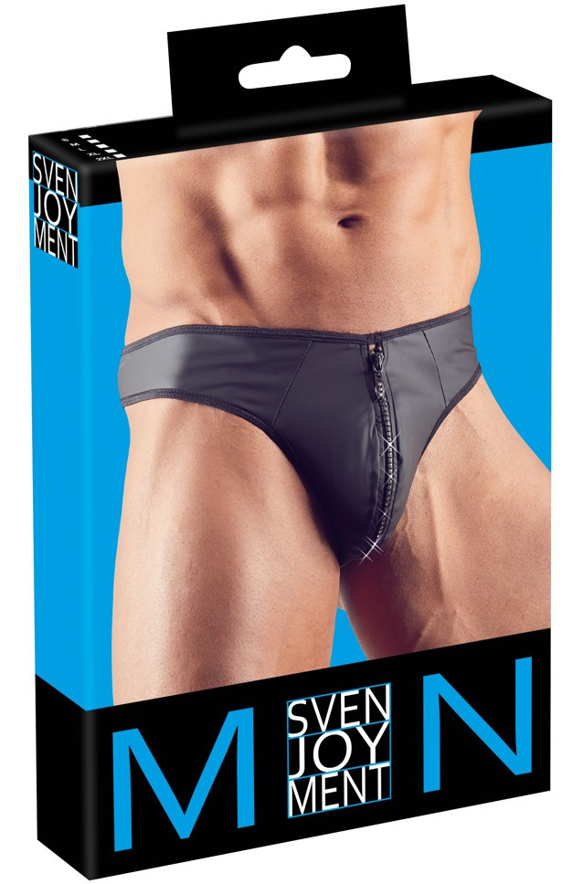 Tanga jsou ušita z matně lesklé aelastické látky připomínající neopren. Jsou pohodlná a můžete je nosit klidně celý den. Díky ozdobnému zipu budete mít snadný přístup k penisu.