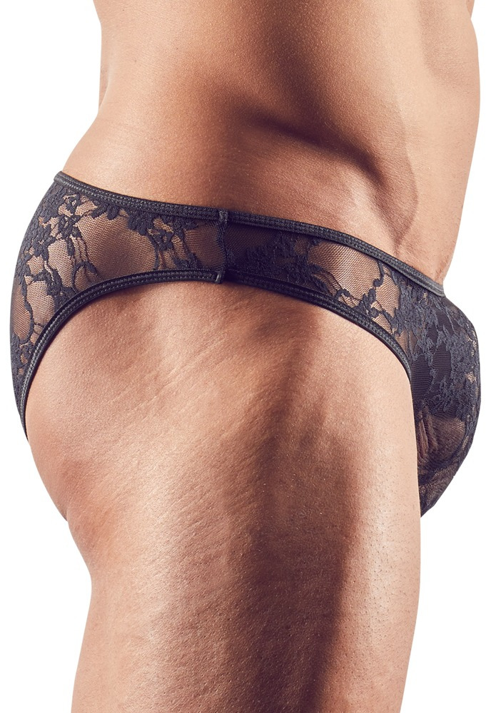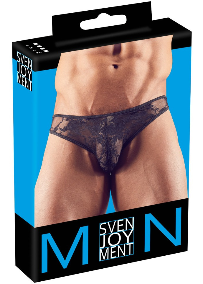Slipy jsou vyrobeny z měkkého a elastického materiálu, který zaručí pohodlné nošení i během dne. Průsvitná krajka poodhalí penis i zadek.