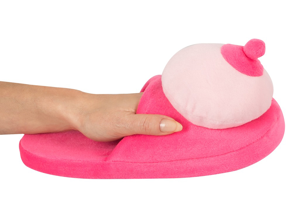 Pohodlné plyšové papuče s bujným poprsím jsou perfektním dárkem pro všechny, kteří umějí ocenit lechtivý humor. Každá papuč má jedno prso s pořádně velkou bradavkou.