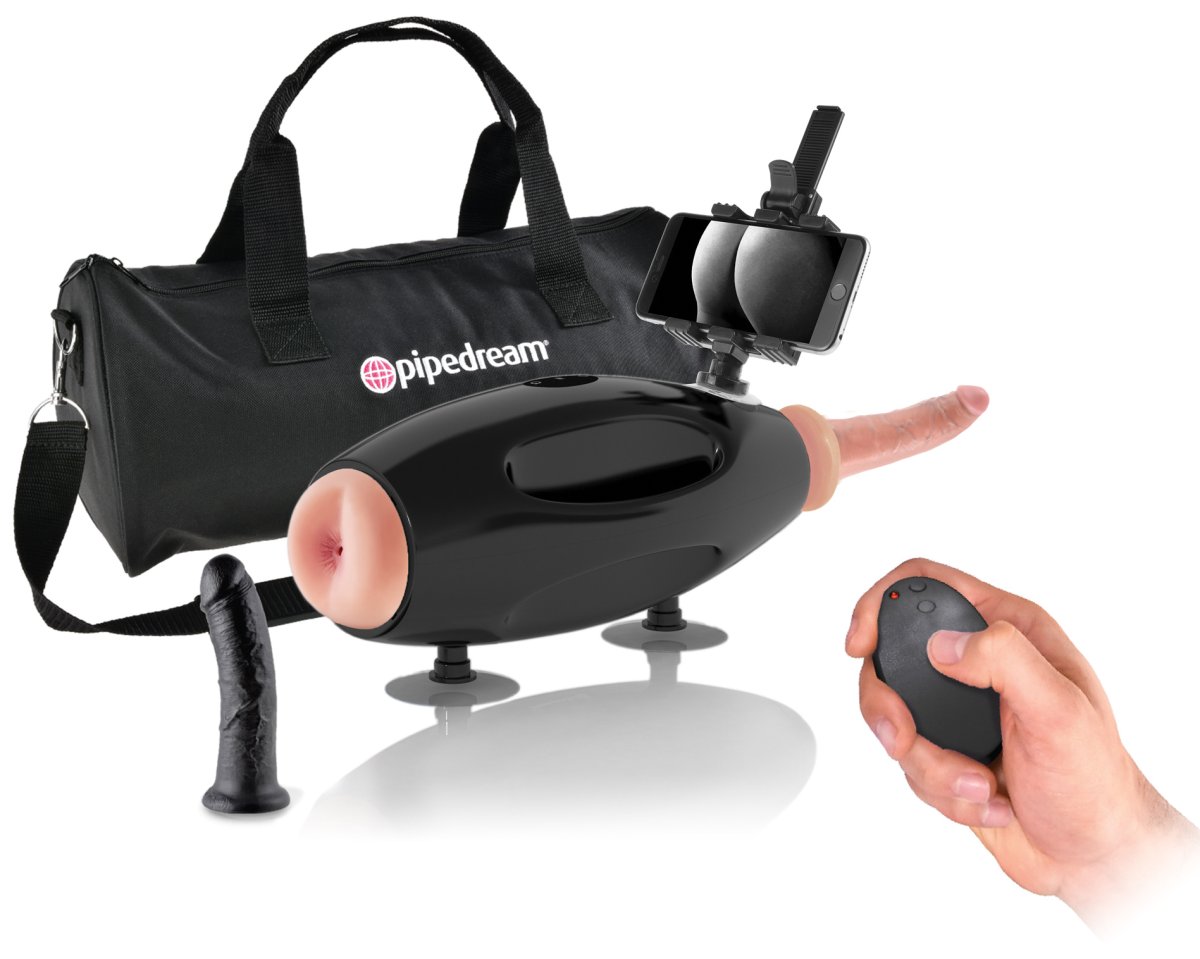 V balení najdete: šukací stroj, 2 dilda (King Cock 7" a King Cock 8"), umělý zadeček, dálkový ovladač, držák na mobil a univerzální cestovní adaptér. Navíc dostanete i praktickou cestovní tašku.