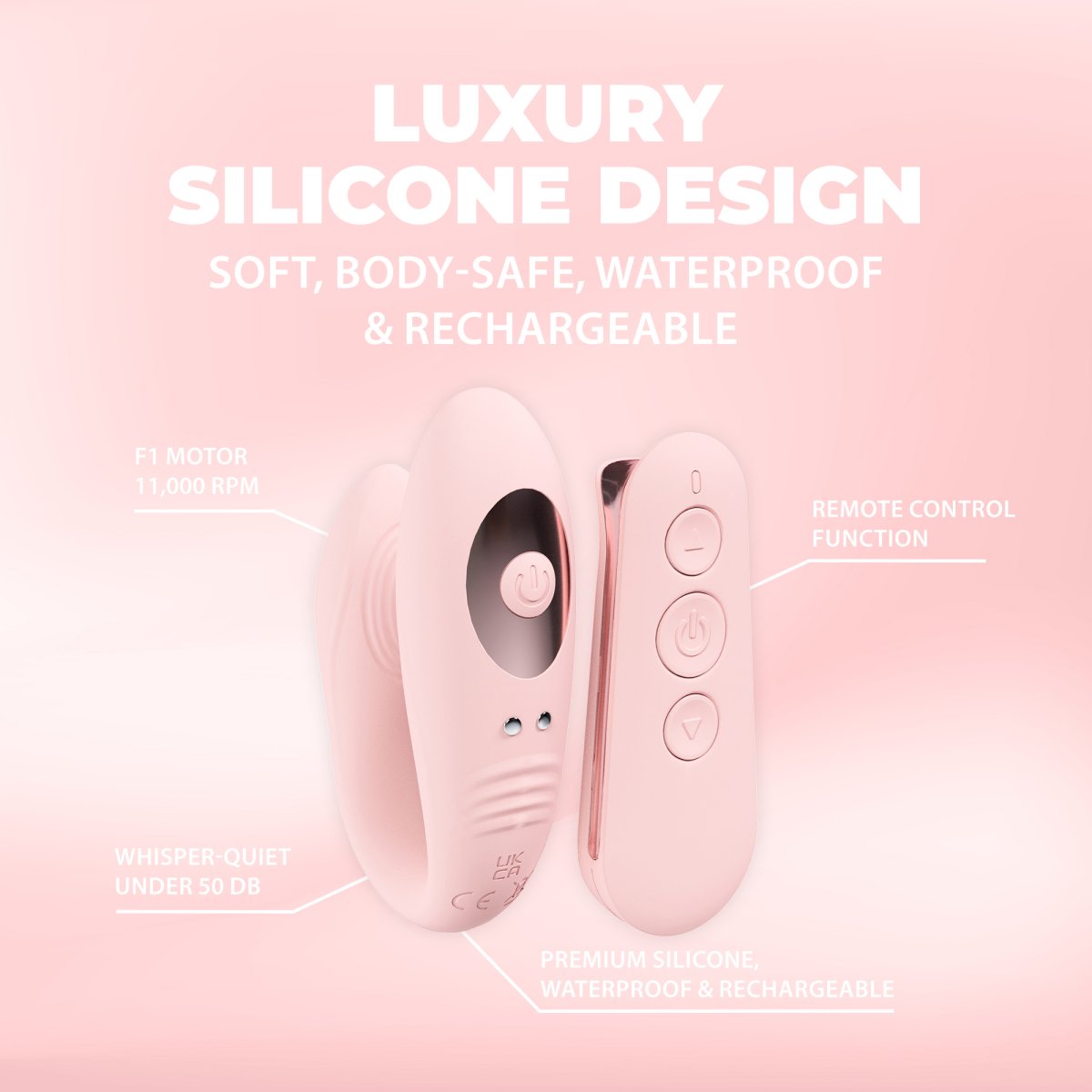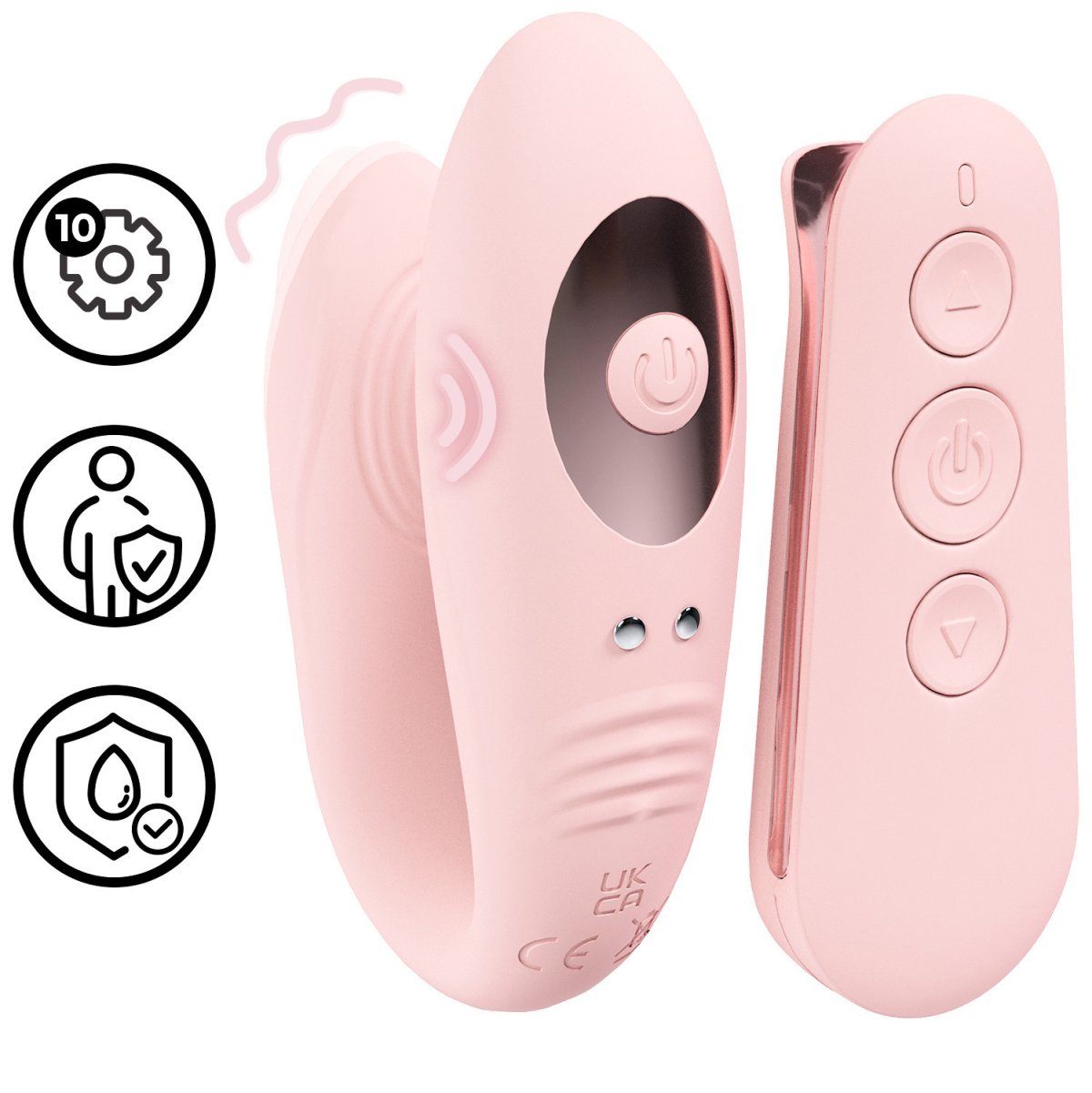 Vibrátor má extra silné a hluboké vibrace a během sexu rozvibruje bod G, klitoris i penis najednou. Dá se pohodlně ovládat dálkovým ovladačem.