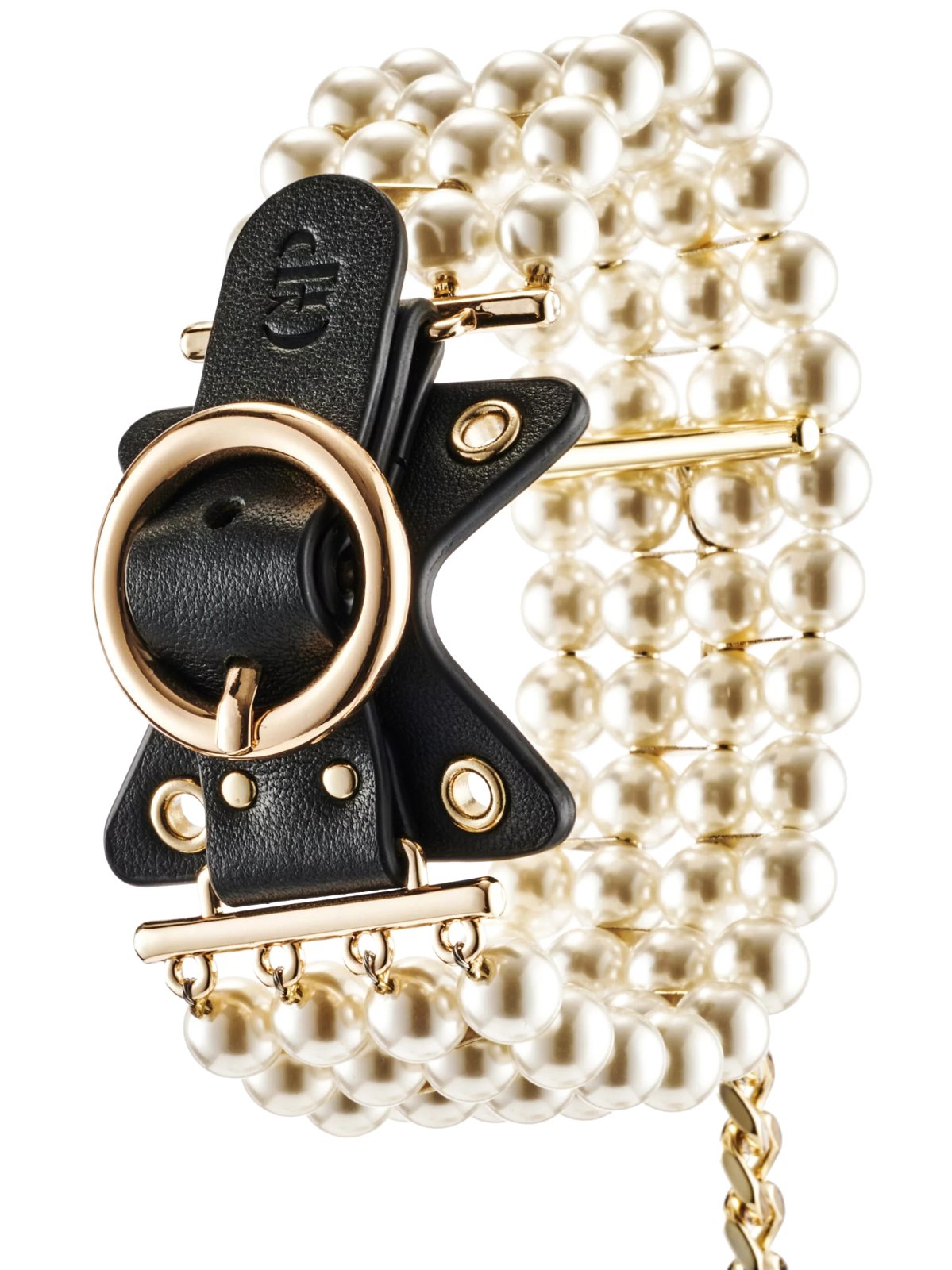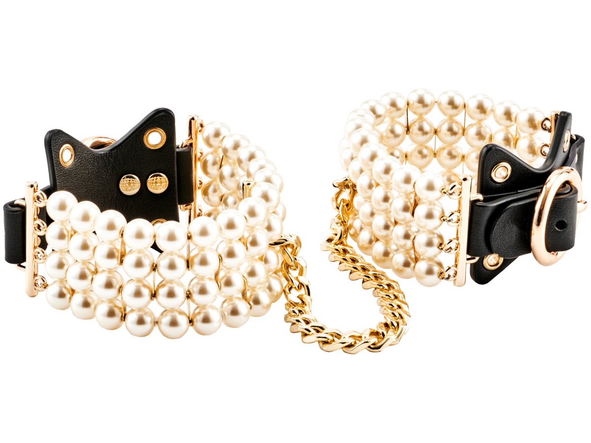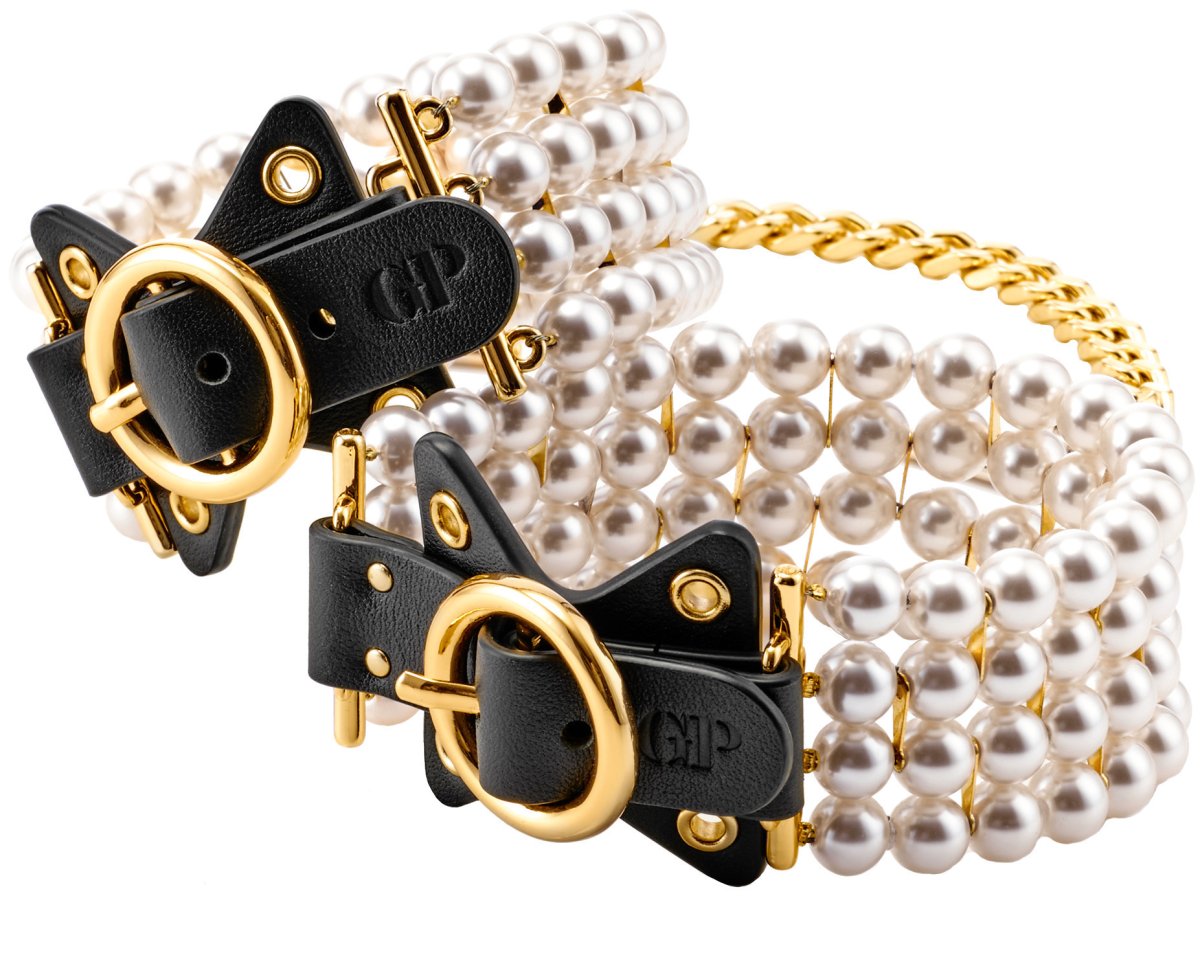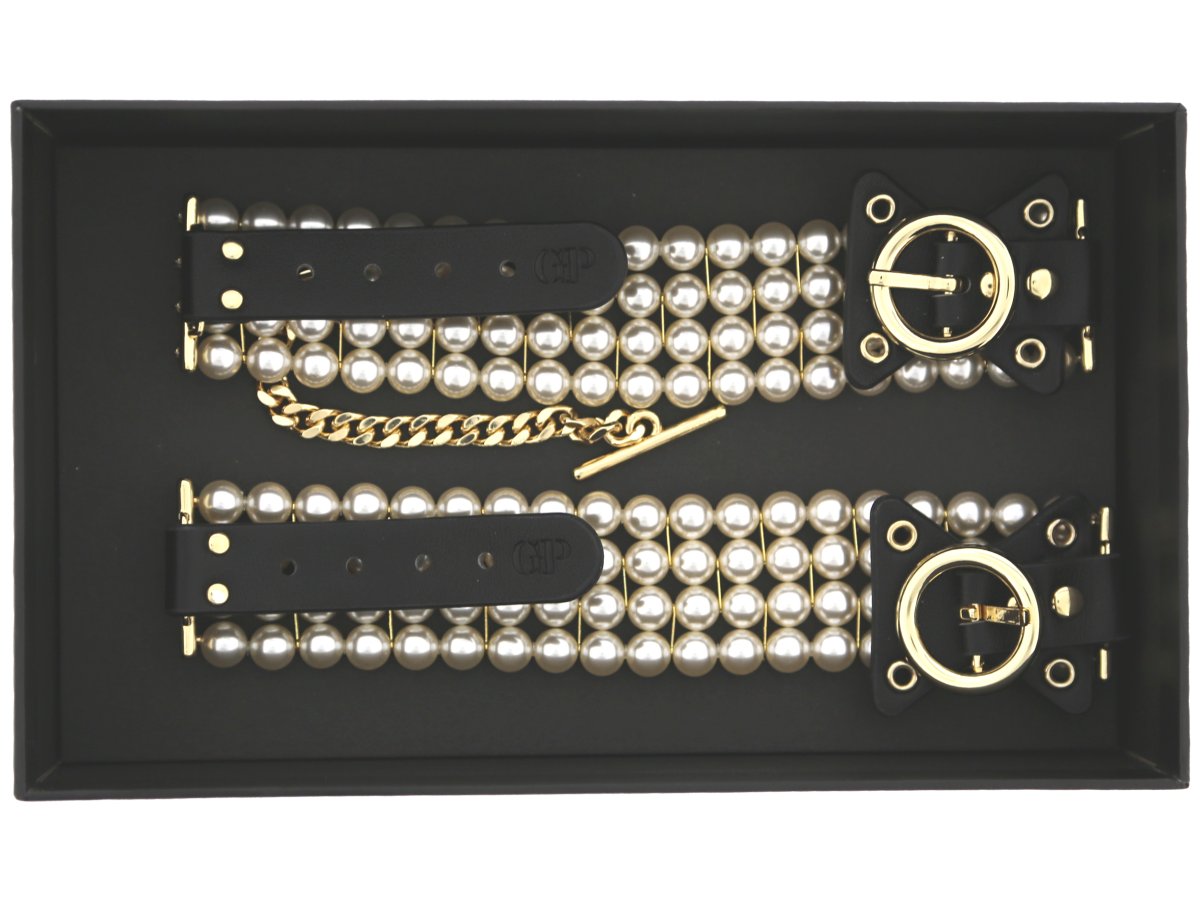 Pouta kombinují perly, měkkou umělou kůži a zlaté detaily – poslouží jako elegantní pomůcka pro něžné a stylové bondage hry.