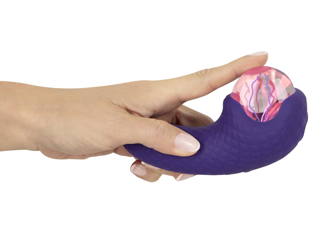 Oboustranný vibrátor poslouží pro vnější i vnitřní stimulaci a navíc vám dopřeje jedinečnou světelnou show – plazmová koule během stimulace svítí.