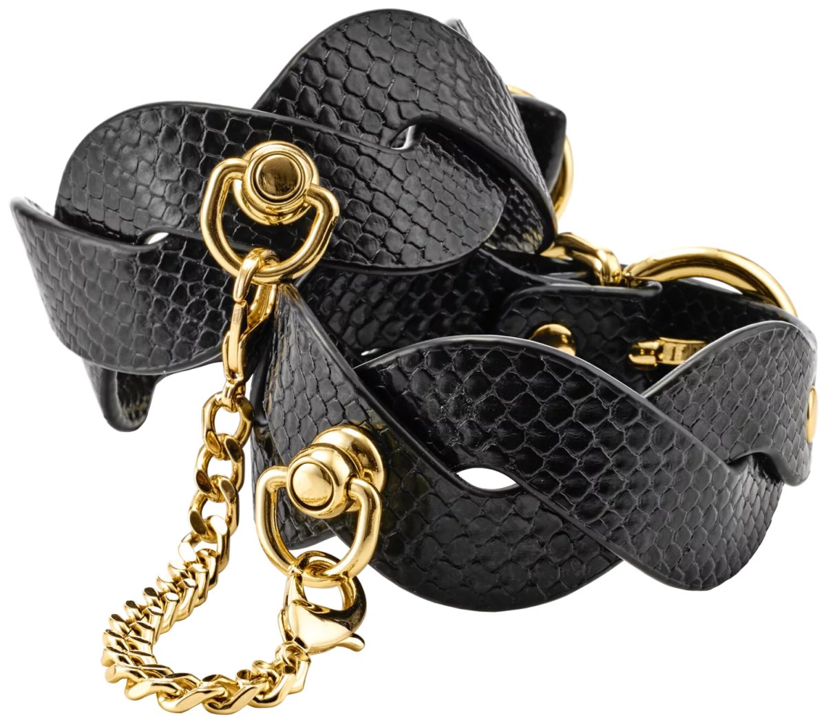 Pouta mají pletený texturovaný design a zlaté detaily – poslouží jako elegantní pomůcka pro něžné a stylové bondage hry.