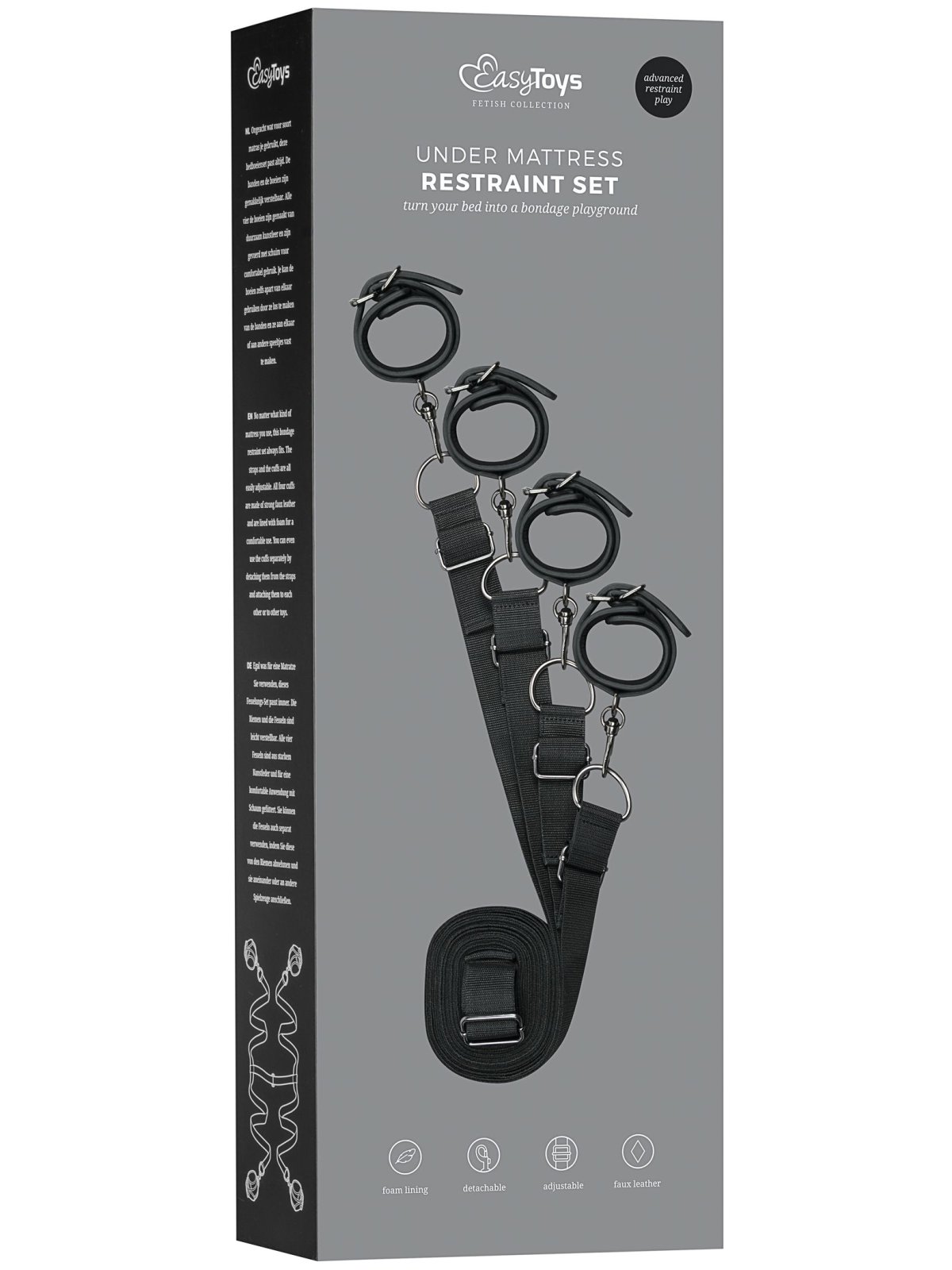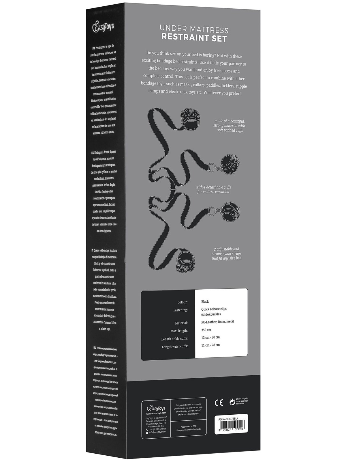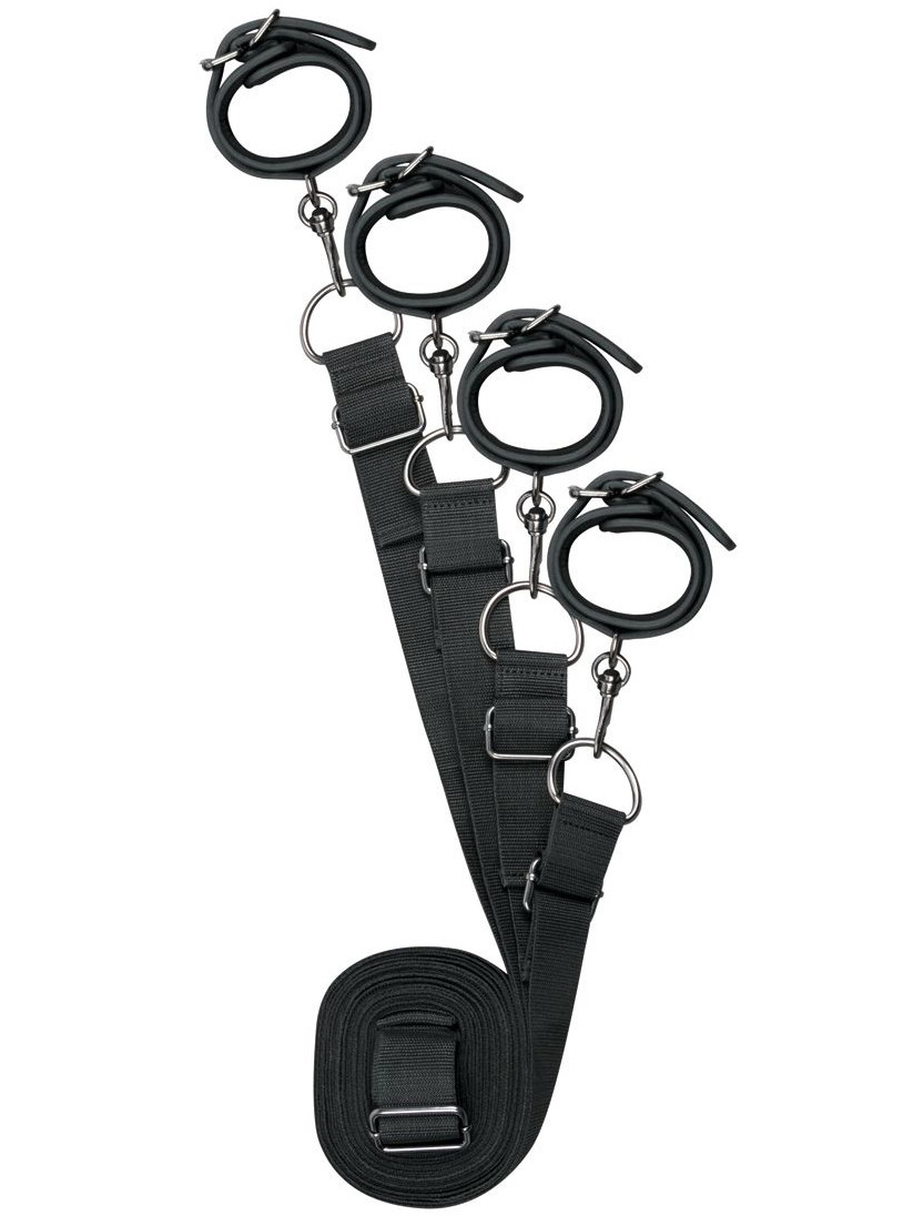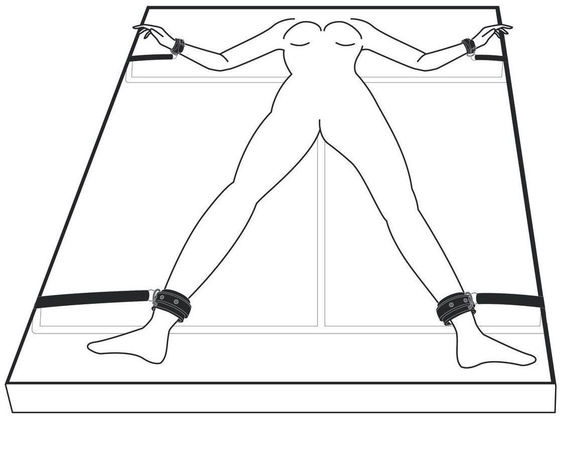 Použití je jednoduché. Vložte popruhy pod matraci tak, aby pouta volně visela po stranách. Poté nechte svého partnera lehnout si na postel a svažte mu ruce a kotníky pouty.