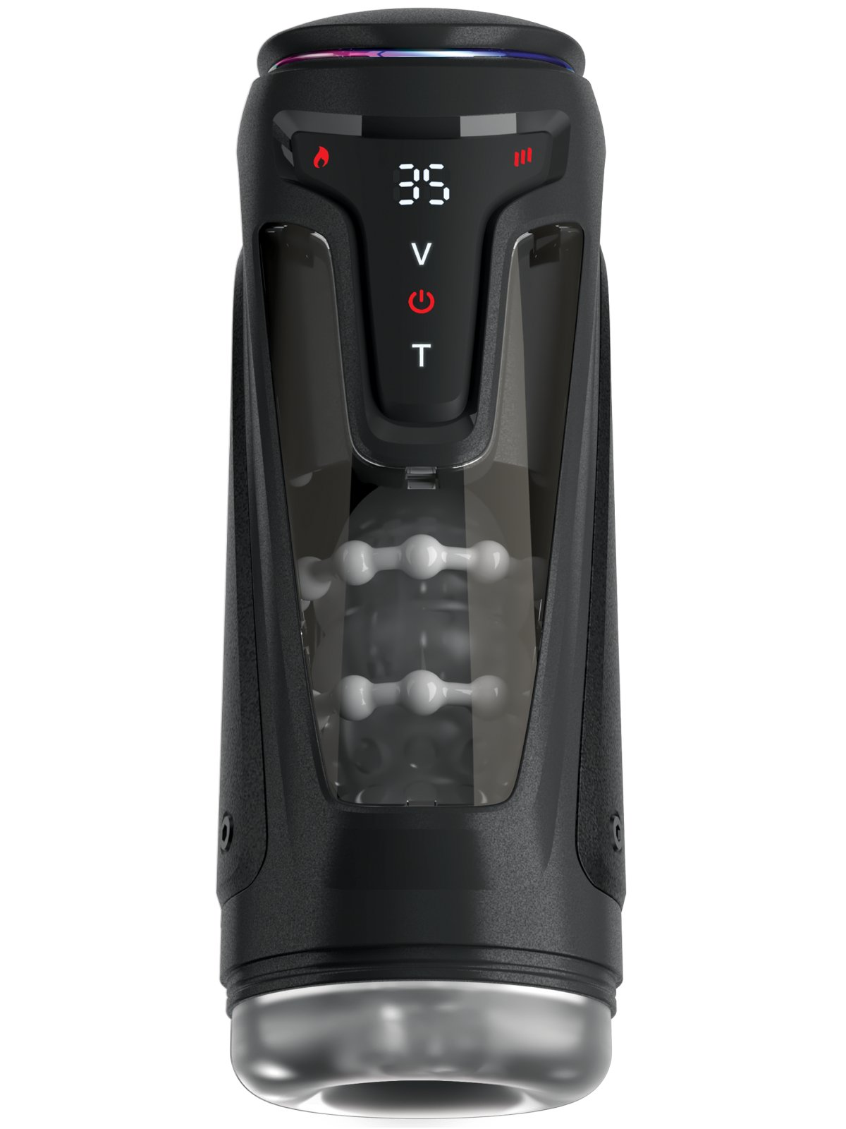 Pro pohodlnější používání je masturbátor vybavený displejem, na kterém uvidíte aktuálně zapnuté módy i stav baterie. Na horní straně je navíc LED kroužek, který po zapnutí mění barvy.