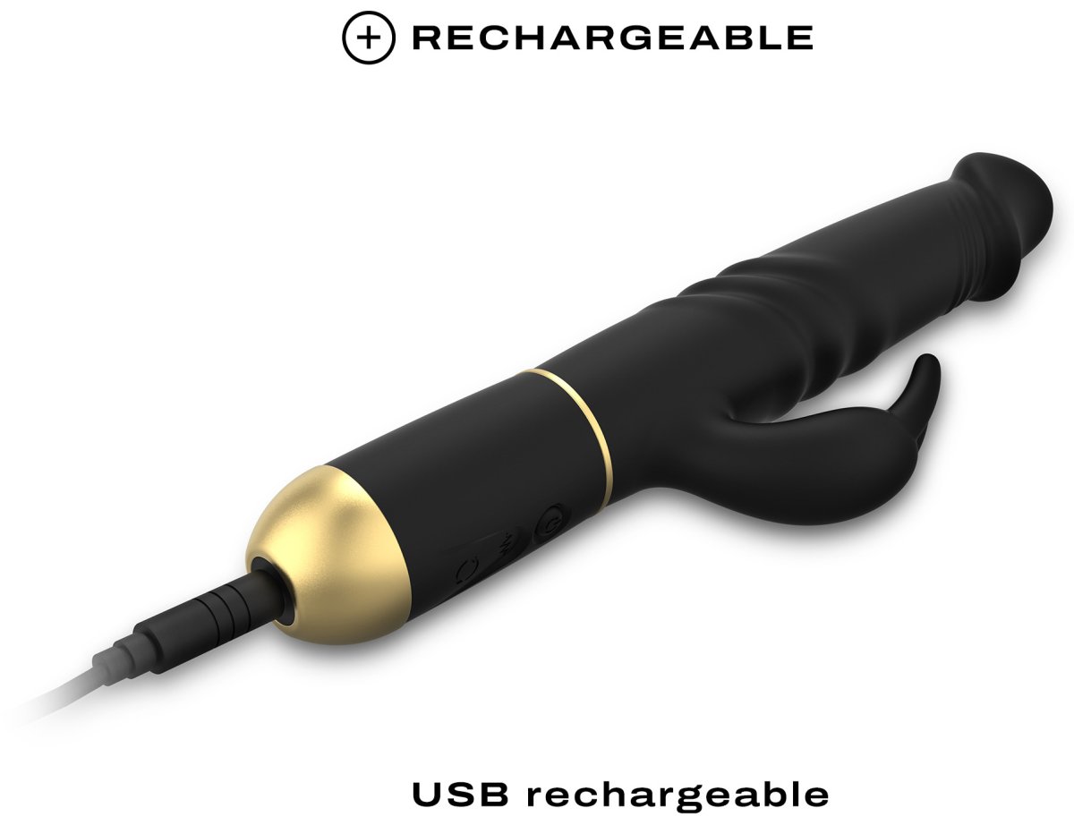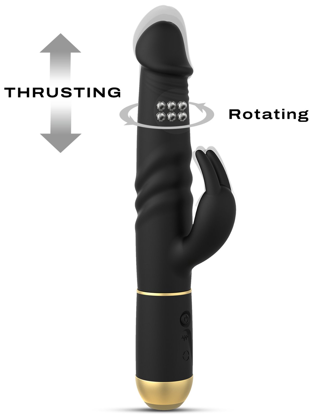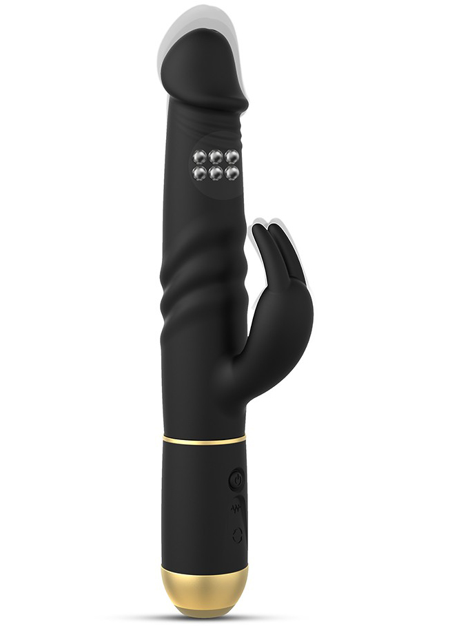 Špička vibrátoru, která je realisticky vymodelovaná do tvaru žaludu, nevibruje, ale přiráží. Hned za žaludem je několik řad rotačních perel. Díky jejich pohybu navíc mírně rotuje i špička vibrátoru. Králíček má silné vibrace.